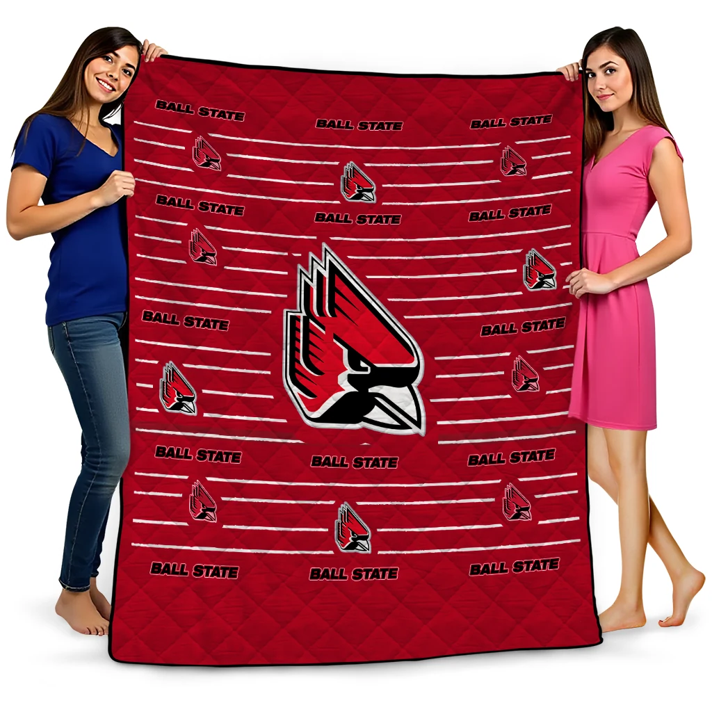 Wrap yourself in warmth and pride with the Ball State Cardinals Handdrawn Stripes Red Quilt Blanket from the Ball State Cardinals Blankets collection at Yes That Blanket. Made from 100% premium quilting-weight polyester blended with a touch of microfiber, this quilt offers a smooth, soft finish you’ll love. Choose between two quilting styles—Stipple or Diagonal—and enjoy the comfort of a cotton-filled layer inside that adds extra coziness for every season. The border is available in classic black or white, giving your design a clean, timeless edge.