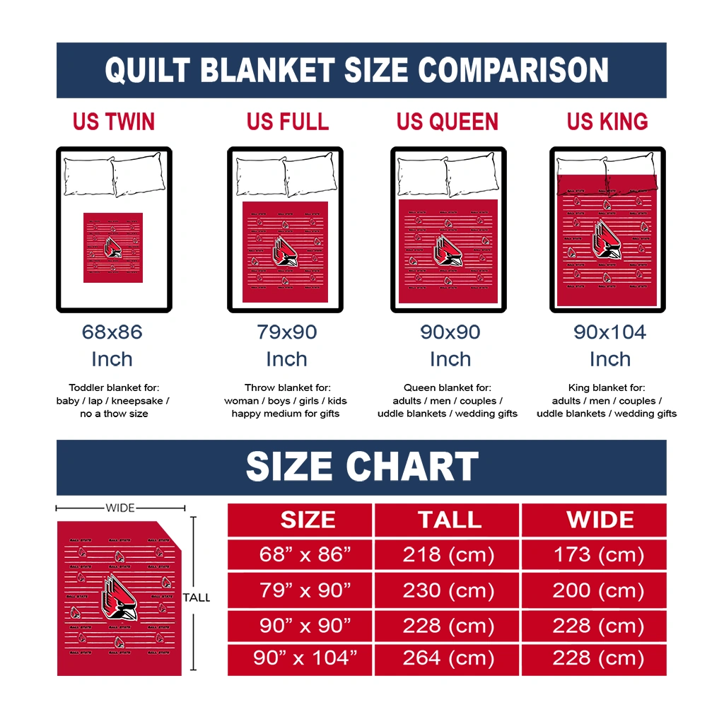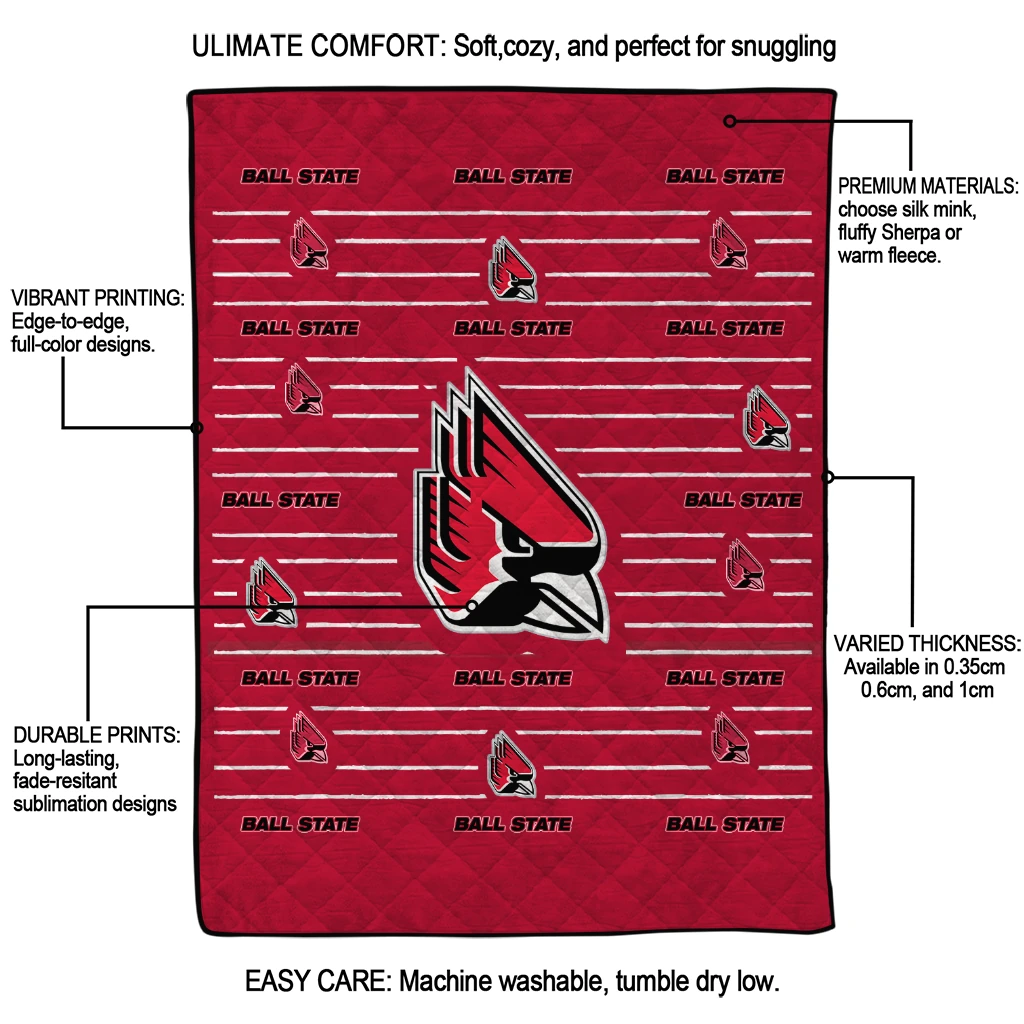 The Ball State Cardinals Handdrawn Stripes Red Quilt Blanket is more than a blanket—it’s everyday comfort, thoughtfully made. Crafted from premium quilting fabric with a soft microfiber touch, it offers a smooth hand-feel and lasting coziness. Layered quilting with a cotton-filled core provides adaptable warmth across seasons while maintaining a clean, tailored look on your bed or sofa.