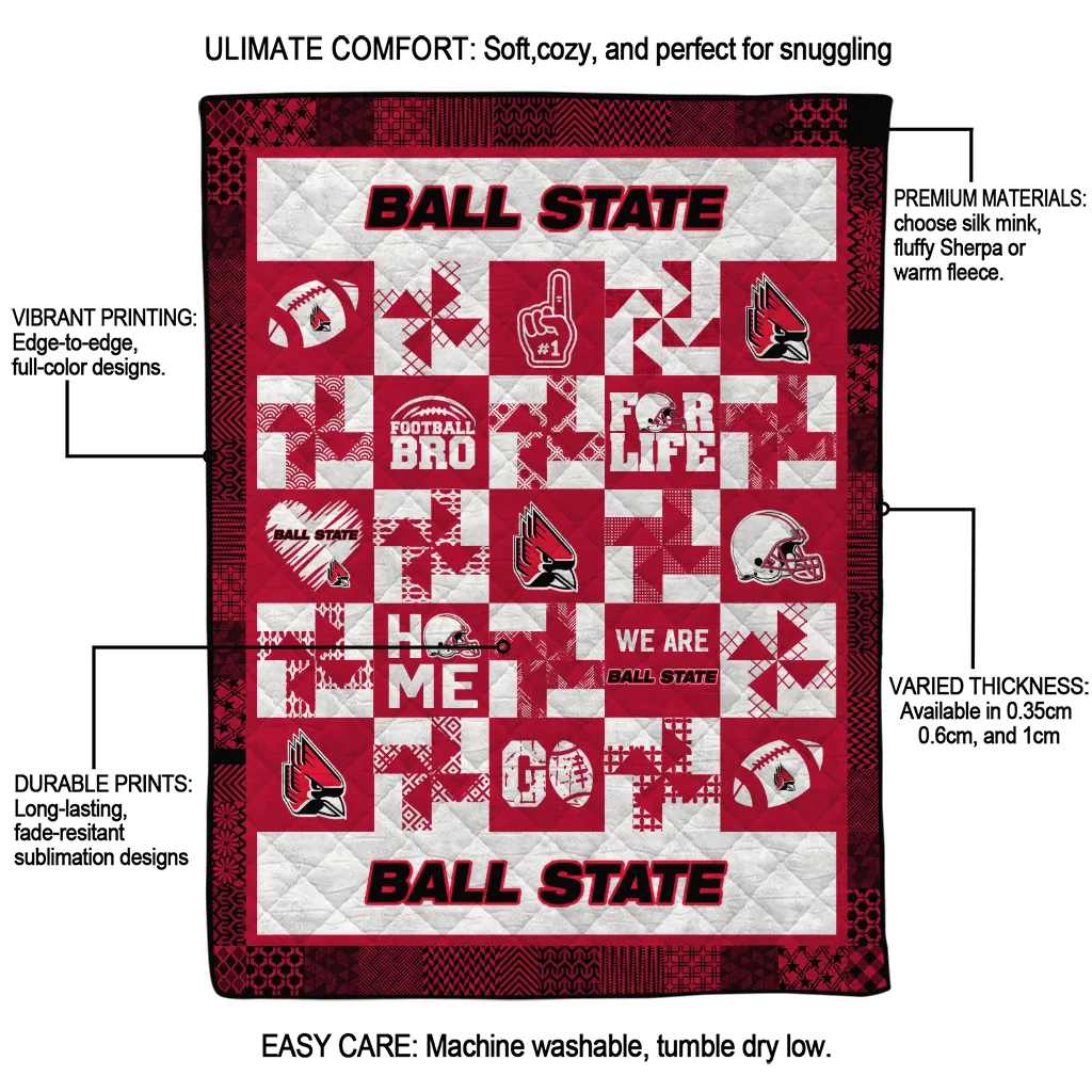Wrap yourself in warmth and pride with the Ball State Cardinals Helmet Heart Red Quilt Blanket from the Ball State Cardinals Blankets collection at Yes That Blanket. Made from 100% premium quilting-weight polyester blended with a touch of microfiber, this quilt offers a smooth, soft finish you’ll love. Choose between two quilting styles—Stipple or Diagonal—and enjoy the comfort of a cotton-filled layer inside that adds extra coziness for every season. The border is available in classic black or white, giving your design a clean, timeless edge.