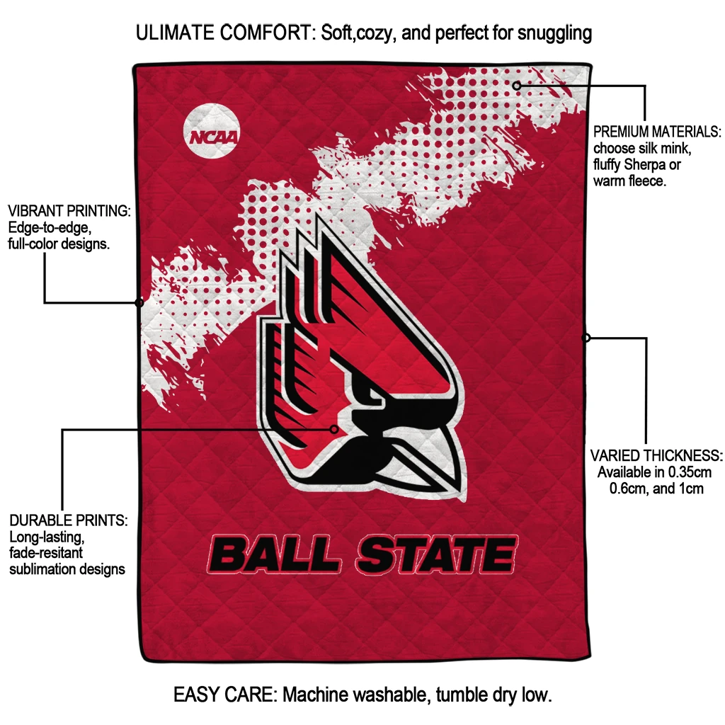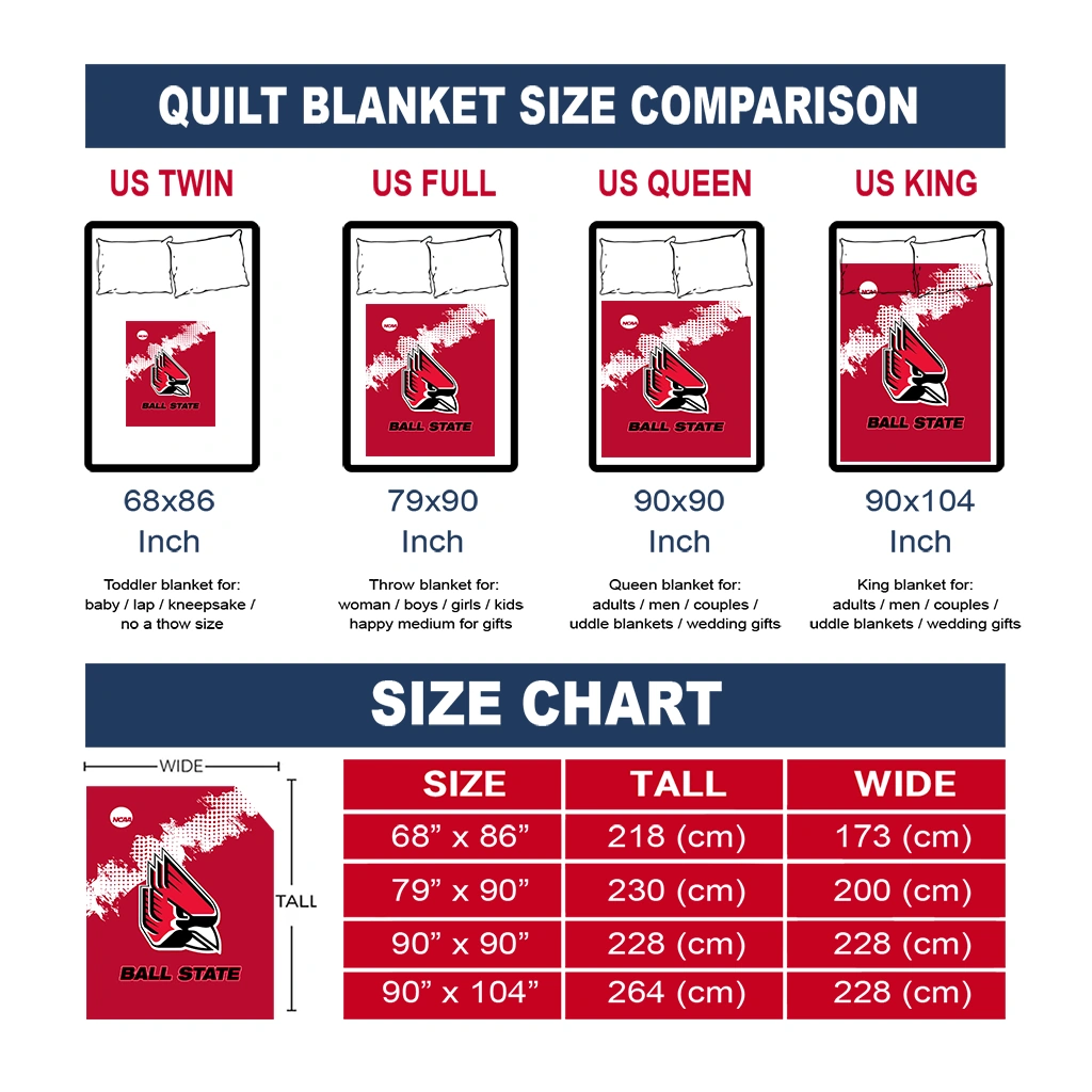 Wrap yourself in warmth and pride with the Ball State Cardinals Paint Trail Red Quilt Blanket from the Ball State Cardinals Blankets collection at Yes That Blanket. Made from 100% premium quilting-weight polyester blended with a touch of microfiber, this quilt offers a smooth, soft finish you’ll love. Choose between two quilting styles—Stipple or Diagonal—and enjoy the comfort of a cotton-filled layer inside that adds extra coziness for every season. The border is available in classic black or white, giving your design a clean, timeless edge.