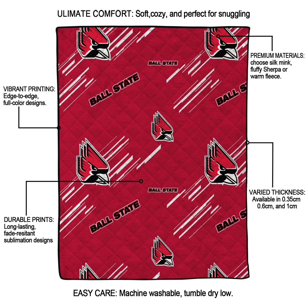Wrap yourself in warmth and pride with the Ball State Cardinals Sketch Lines Red Quilt Blanket from the Ball State Cardinals Blankets collection at Yes That Blanket. Made from 100% premium quilting-weight polyester blended with a touch of microfiber, this quilt offers a smooth, soft finish you’ll love. Choose between two quilting styles—Stipple or Diagonal—and enjoy the comfort of a cotton-filled layer inside that adds extra coziness for every season. The border is available in classic black or white, giving your design a clean, timeless edge.