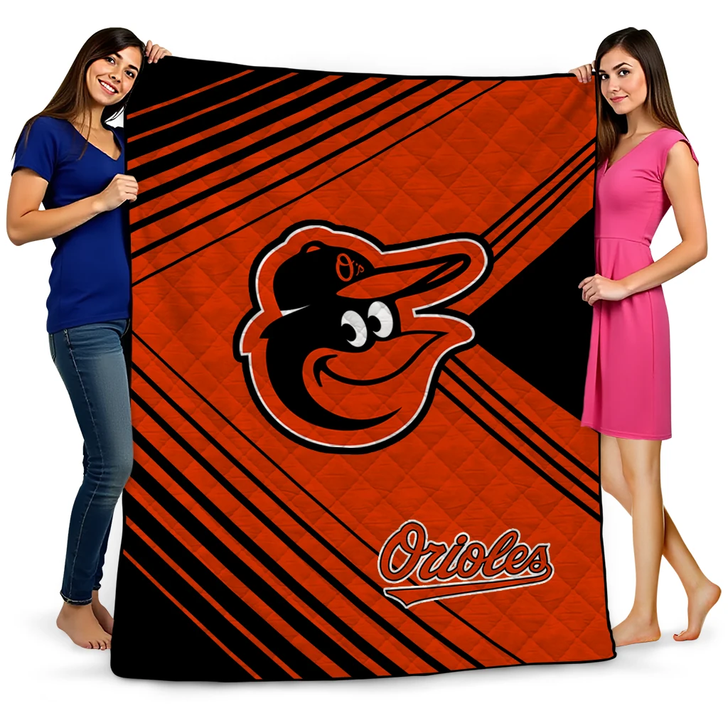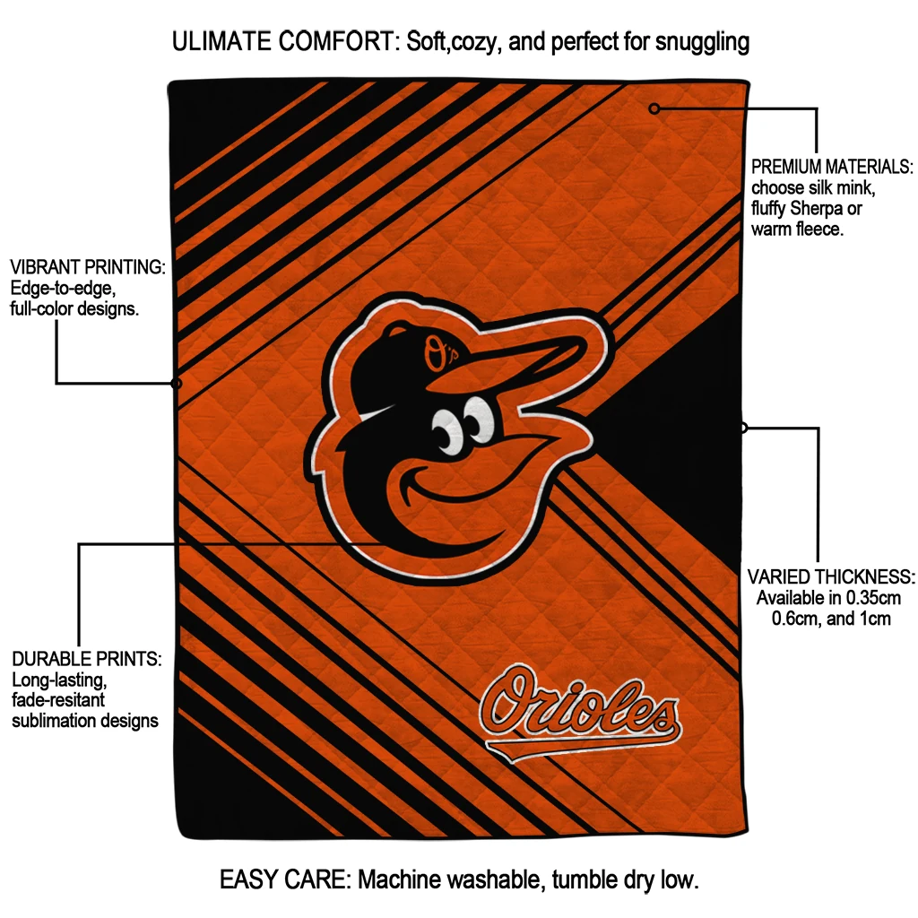 Wrap yourself in warmth and pride with the Baltimore Orioles Arrow Layers Orange Quilt Blanket from the Baltimore Orioles Blankets collection at Yes That Blanket. Made from 100% premium quilting-weight polyester blended with a touch of microfiber, this quilt offers a smooth, soft finish you’ll love. Choose between two quilting styles—Stipple or Diagonal—and enjoy the comfort of a cotton-filled layer inside that adds extra coziness for every season. The border is available in classic black or white, giving your design a clean, timeless edge.