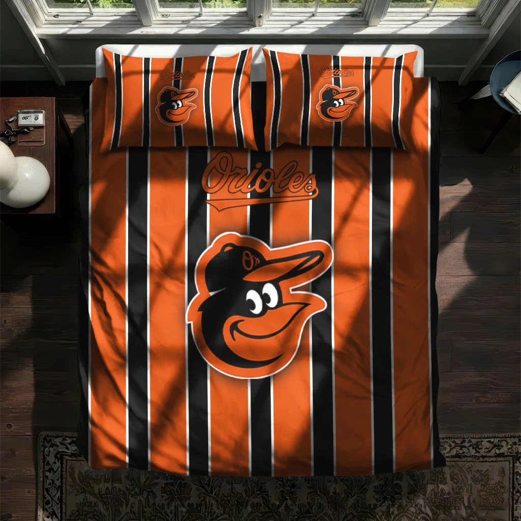 Baltimore Orioles Bedding Set – Stripe Style Orange Black