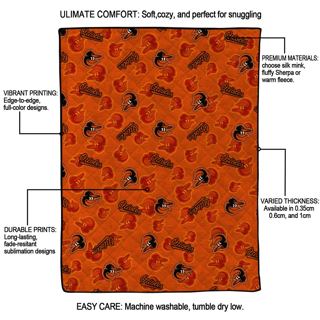 Wrap yourself in warmth and pride with the Baltimore Orioles Solid Classic Orange Quilt Blanket from the Baltimore Orioles Blankets collection at Yes That Blanket. Made from 100% premium quilting-weight polyester blended with a touch of microfiber, this quilt offers a smooth, soft finish you’ll love. Choose between two quilting styles—Stipple or Diagonal—and enjoy the comfort of a cotton-filled layer inside that adds extra coziness for every season. The border is available in classic black or white, giving your design a clean, timeless edge.