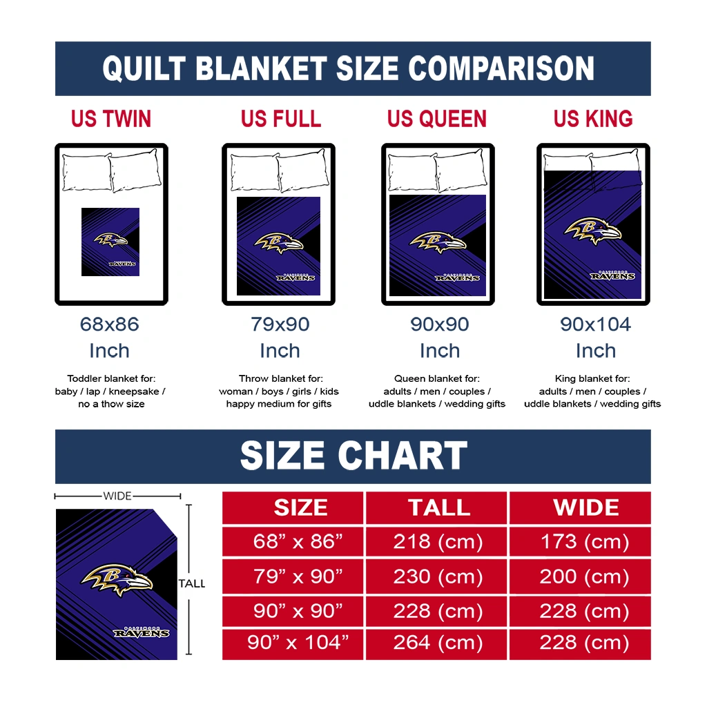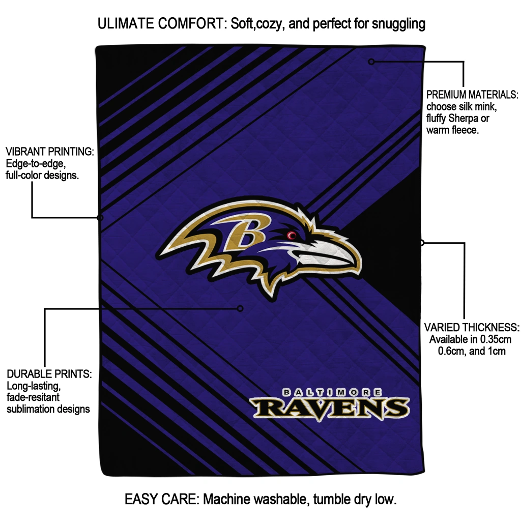 Wrap yourself in warmth and pride with the Baltimore Ravens Arrow Layers Purple Quilt Blanket from the Baltimore Ravens Blankets collection at Yes That Blanket. Made from 100% premium quilting-weight polyester blended with a touch of microfiber, this quilt offers a smooth, soft finish you’ll love. Choose between two quilting styles—Stipple or Diagonal—and enjoy the comfort of a cotton-filled layer inside that adds extra coziness for every season. The border is available in classic black or white, giving your design a clean, timeless edge.