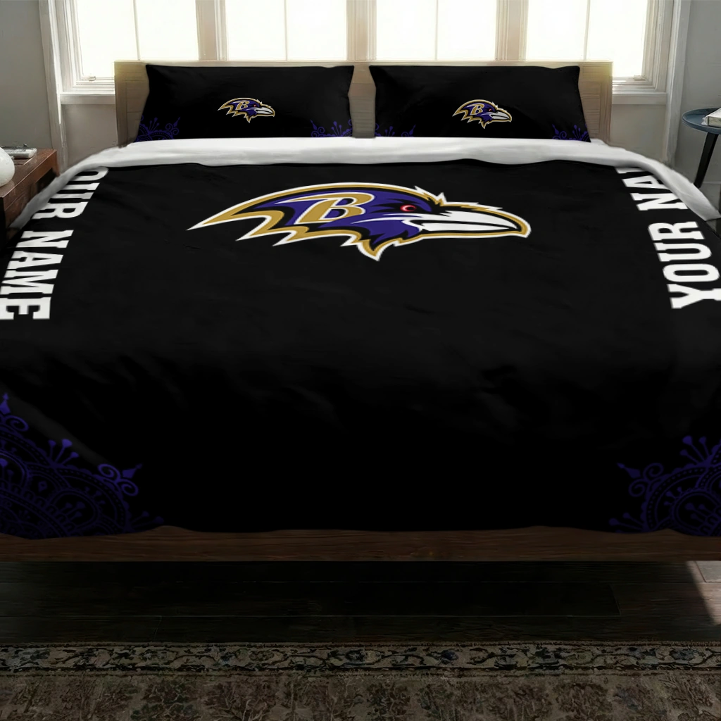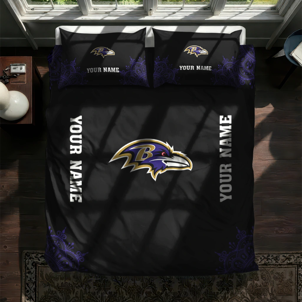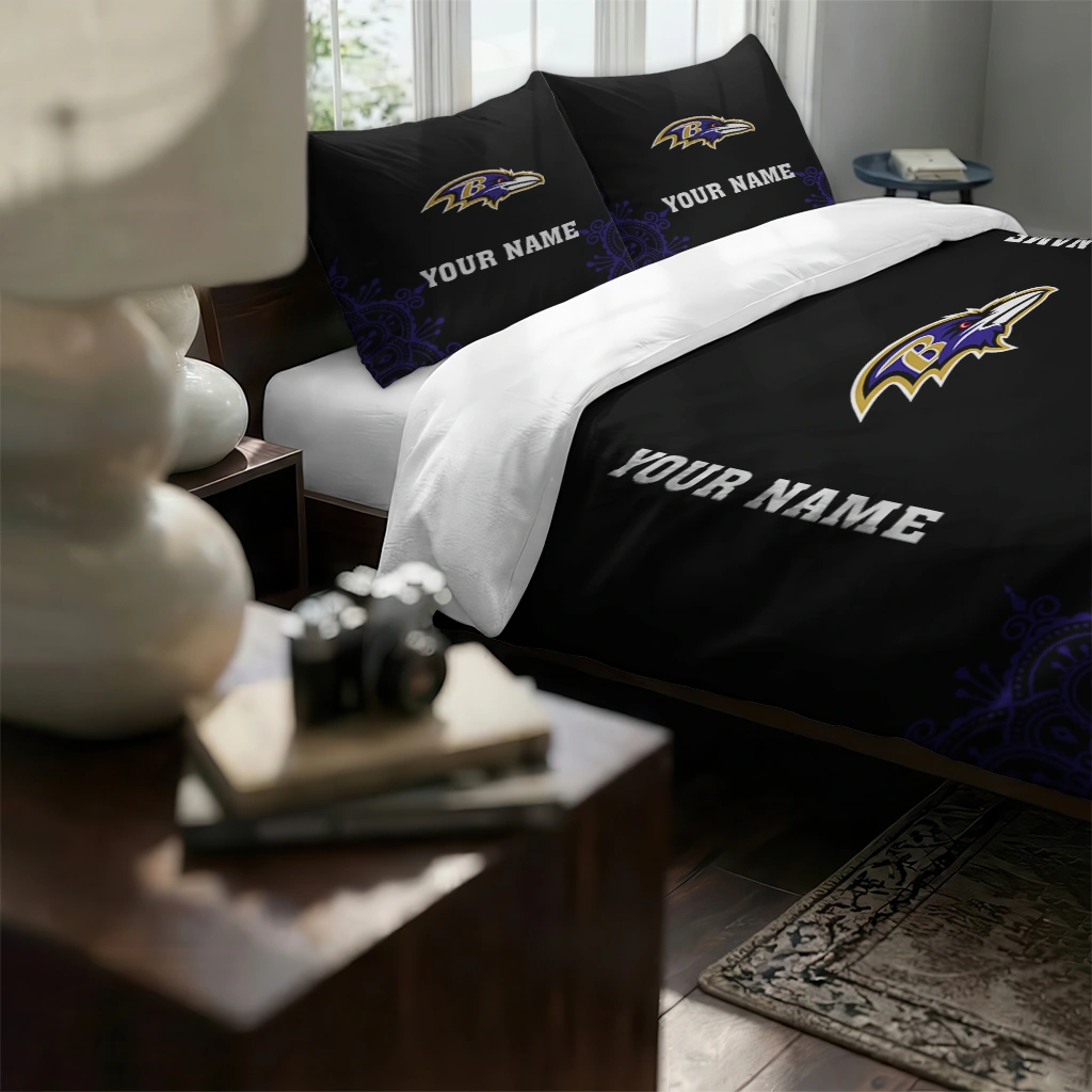 Baltimore Ravens Bedding Set – Customized Mandala Lacework Black Purple