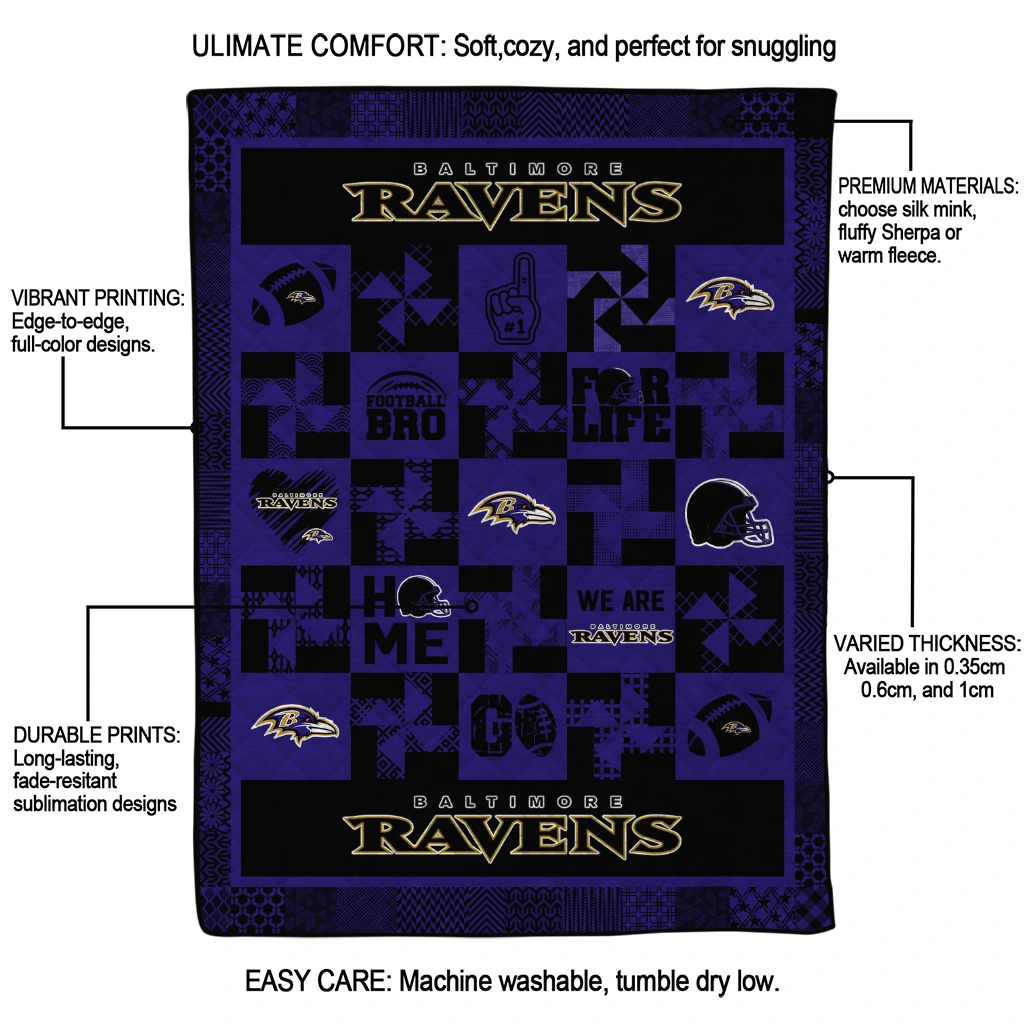 The Baltimore Ravens Helmet Heart Purple Quilt Blanket is more than a blanket—it’s everyday comfort, thoughtfully made. Crafted from premium quilting fabric with a soft microfiber touch, it offers a smooth hand-feel and lasting coziness. Layered quilting with a cotton-filled core provides adaptable warmth across seasons while maintaining a clean, tailored look on your bed or sofa.