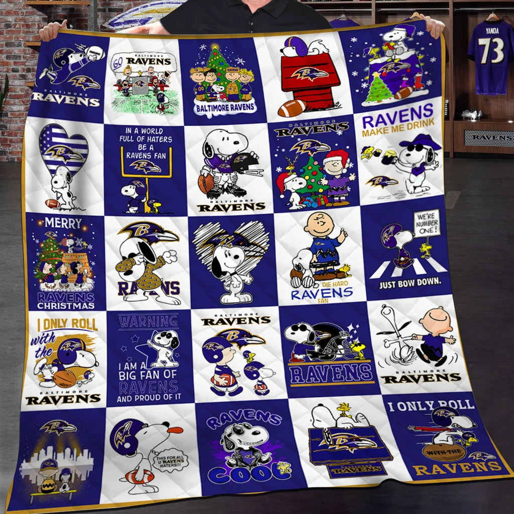 Baltimore Ravens Quilt Blanket – Snoopy Peanuts Patchwork Purple White