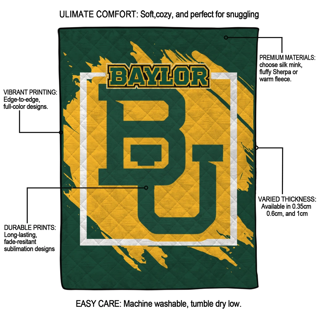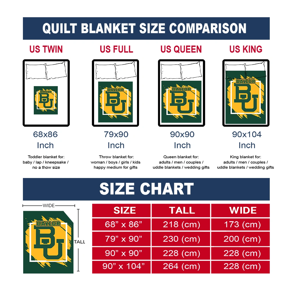 Wrap yourself in warmth and pride with the Baylor Bears Block Border Green Quilt Blanket from the Baylor Bears Blankets collection at Yes That Blanket. Made from 100% premium quilting-weight polyester blended with a touch of microfiber, this quilt offers a smooth, soft finish you’ll love. Choose between two quilting styles—Stipple or Diagonal—and enjoy the comfort of a cotton-filled layer inside that adds extra coziness for every season. The border is available in classic black or white, giving your design a clean, timeless edge.