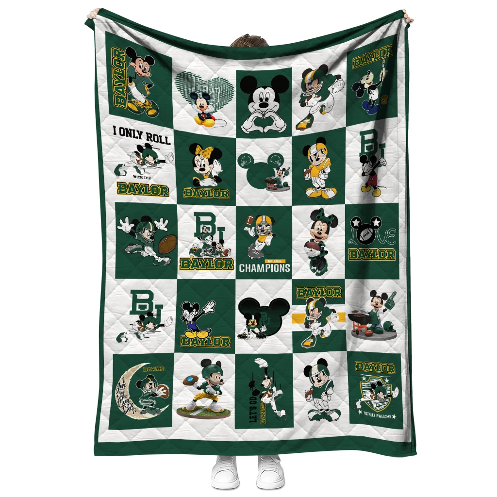 The Baylor Bears Mickey Mouse Motif Green White Quilt Blanket is more than a blanket—it’s everyday comfort, thoughtfully made. Crafted from premium quilting fabric with a soft microfiber touch, it offers a smooth hand-feel and lasting coziness. Layered quilting with a cotton-filled core provides adaptable warmth across seasons while maintaining a clean, tailored look on your bed or sofa.
