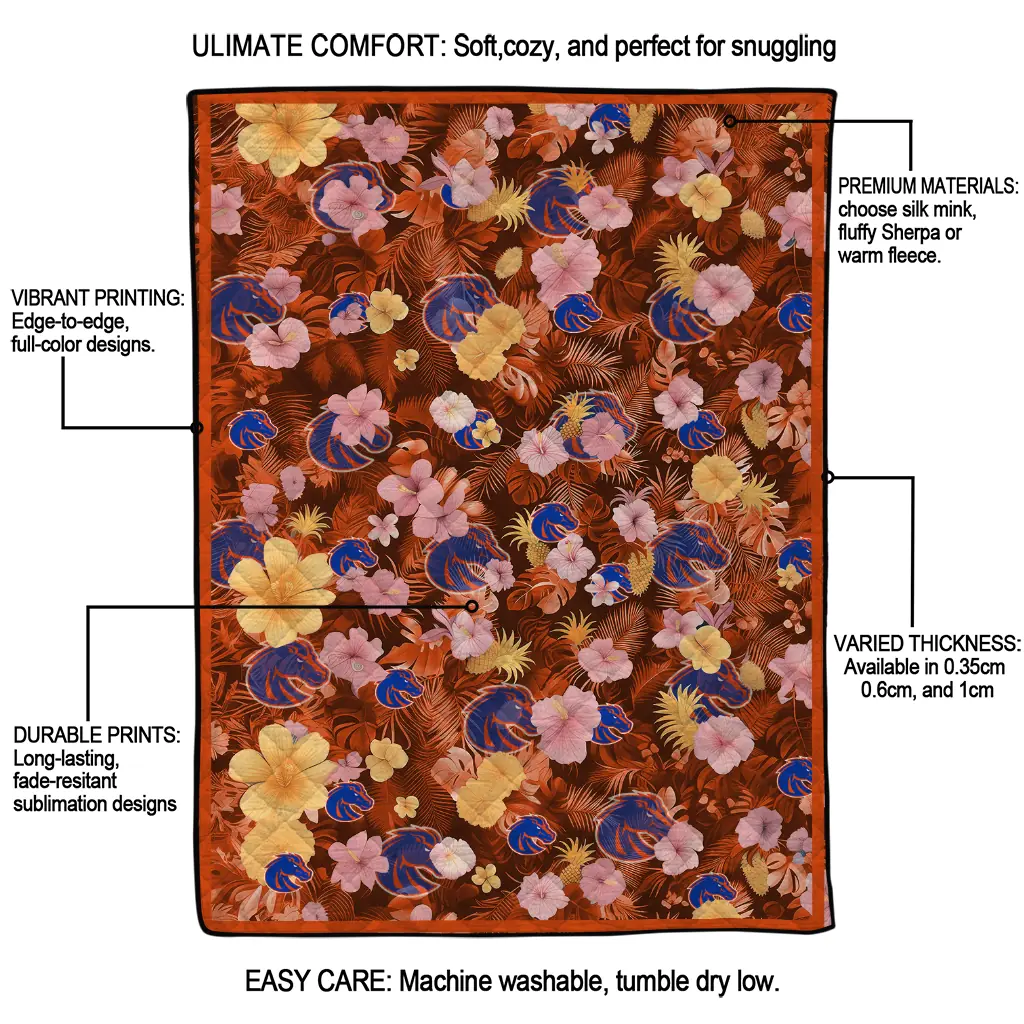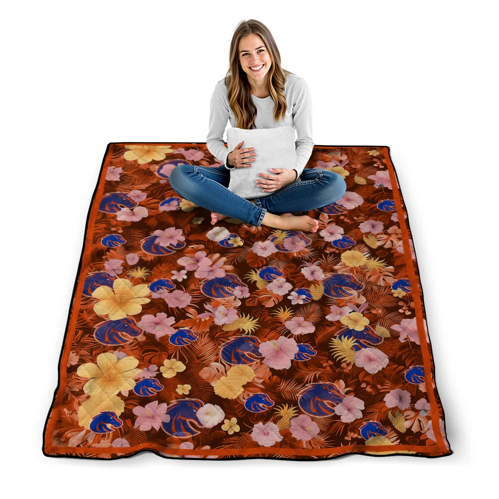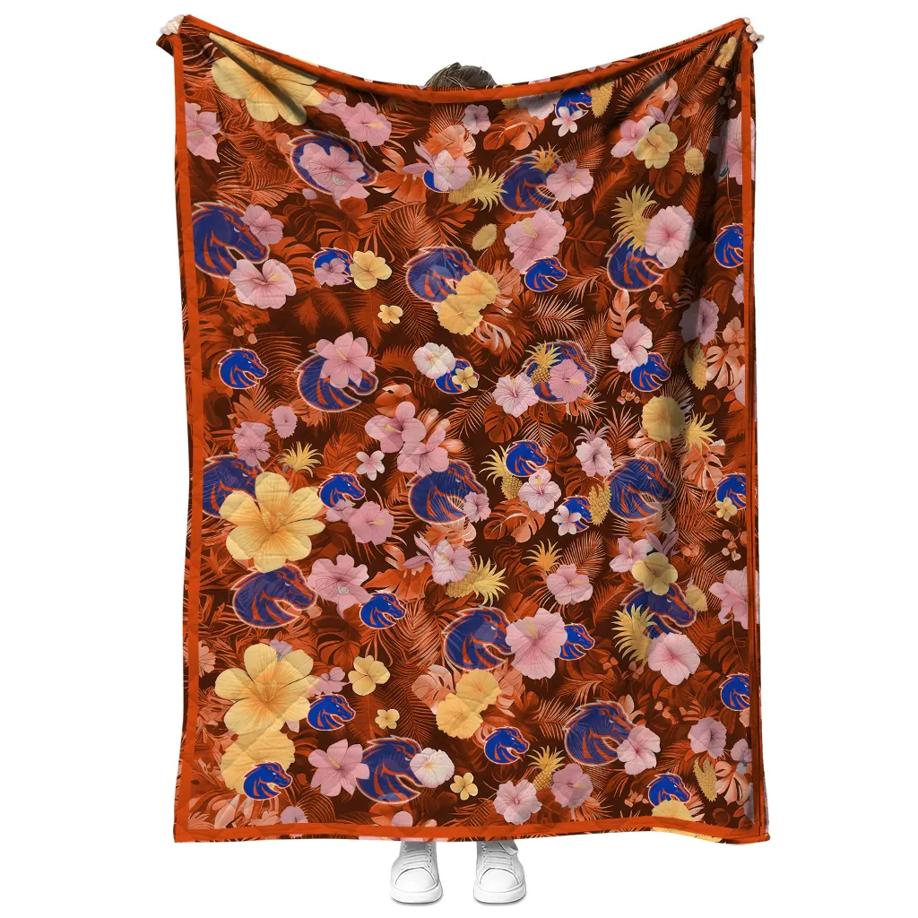 Wrap yourself in warmth and pride with the Boise State Broncos Hibiscus Foliage Orange Quilt Blanket from the Boise State Broncos Blankets collection at Yes That Blanket. Made from 100% premium quilting-weight polyester blended with a touch of microfiber, this quilt offers a smooth, soft finish you’ll love. Choose between two quilting styles—Stipple or Diagonal—and enjoy the comfort of a cotton-filled layer inside that adds extra coziness for every season. The border is available in classic black or white, giving your design a clean, timeless edge.