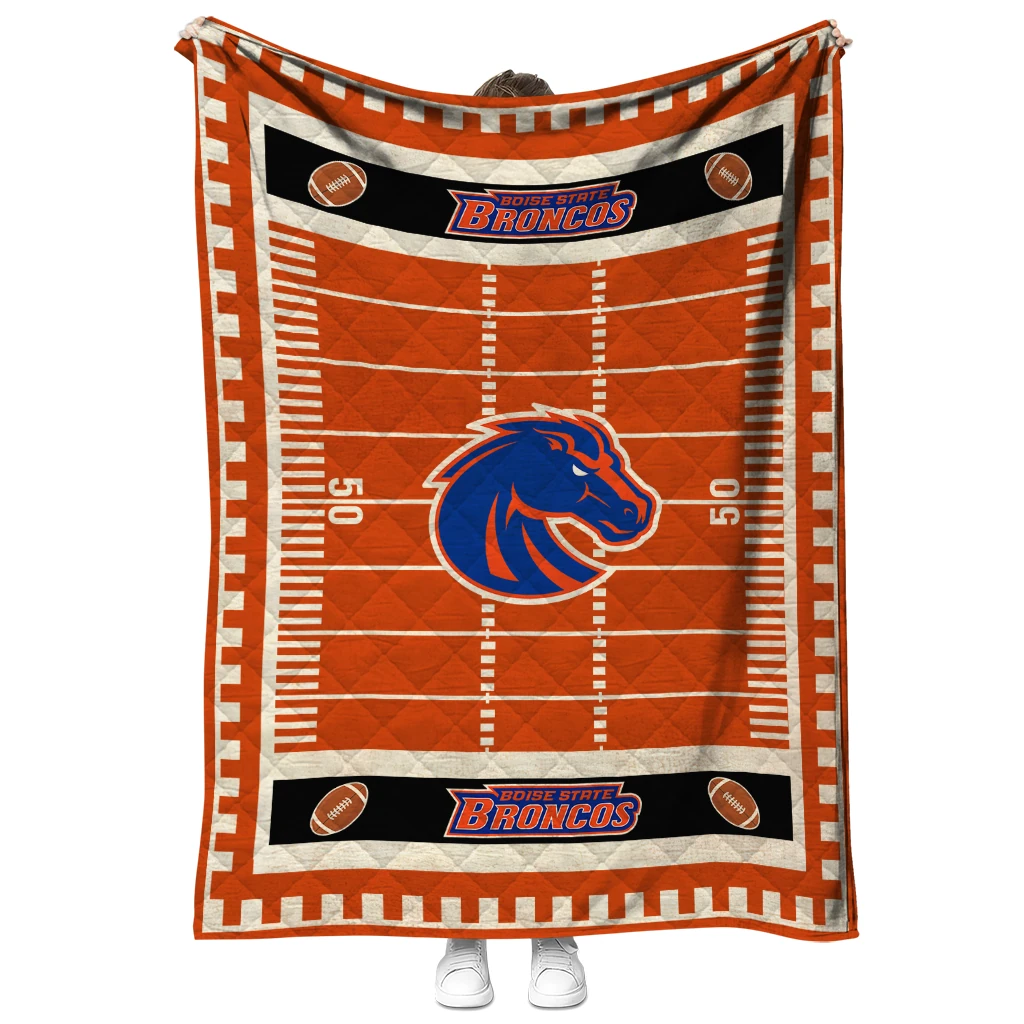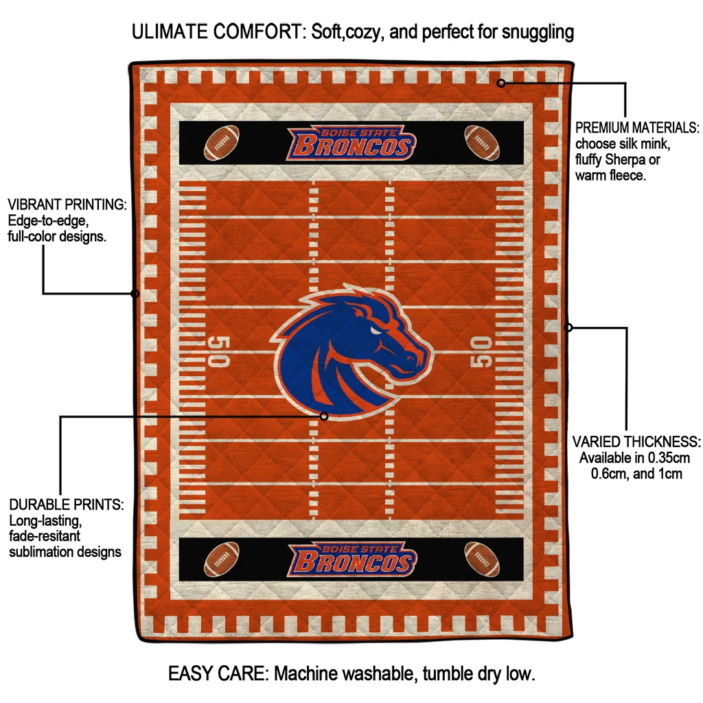 Wrap yourself in warmth and pride with the Boise State Broncos Mickey Player Orange Quilt Blanket from the Boise State Broncos Blankets collection at Yes That Blanket. Made from 100% premium quilting-weight polyester blended with a touch of microfiber, this quilt offers a smooth, soft finish you’ll love. Choose between two quilting styles—Stipple or Diagonal—and enjoy the comfort of a cotton-filled layer inside that adds extra coziness for every season. The border is available in classic black or white, giving your design a clean, timeless edge.