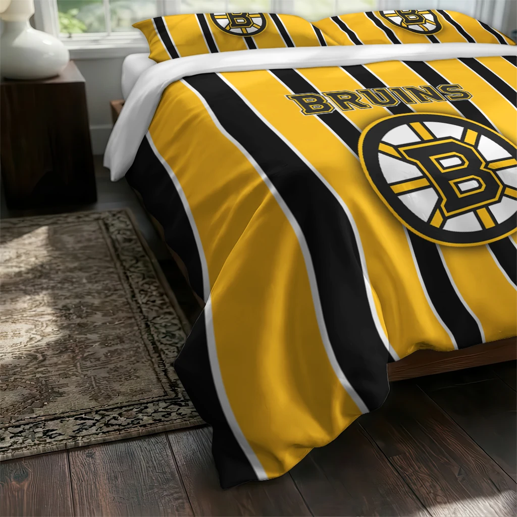 The Boston Bruins Bedding Set – Stripe Style Yellow Black makes your room feel complete, warm, and overflowing with team pride. Designed for true fans, this bedding set from the Boston Bruins Bedding Sets collection at Yes That Blanket turns your sanctuary into a cozy retreat where sport style meets ultimate relaxation. Experience the perfect blend of comfort and passion every night with a finish so soft, you’ll never want to leave.