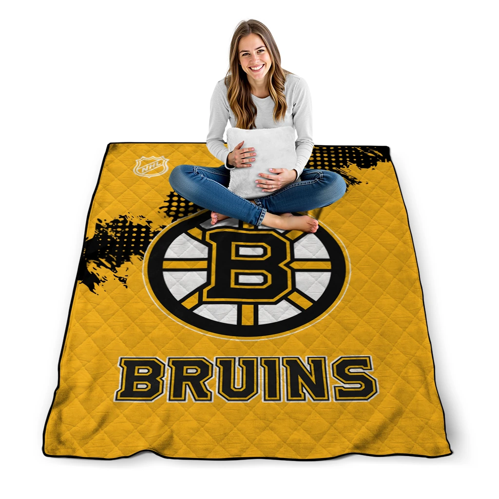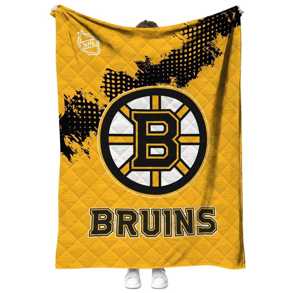 The Boston Bruins NHL Shield Gold Quilt Blanket is more than a blanket—it’s everyday comfort, thoughtfully made. Crafted from premium quilting fabric with a soft microfiber touch, it offers a smooth hand-feel and lasting coziness. Layered quilting with a cotton-filled core provides adaptable warmth across seasons while maintaining a clean, tailored look on your bed or sofa.