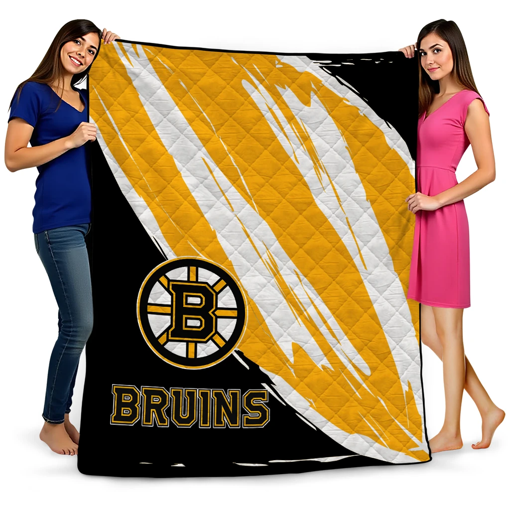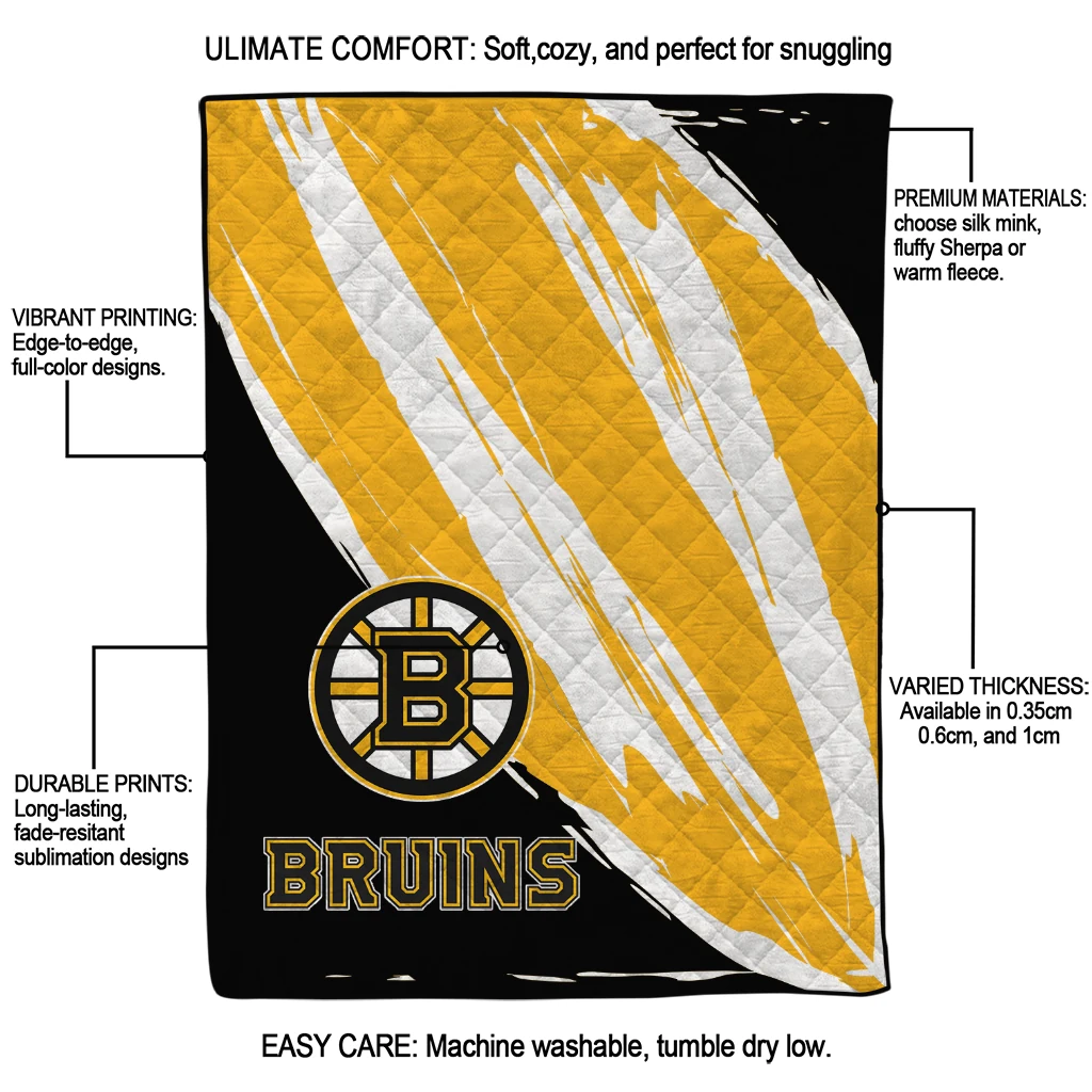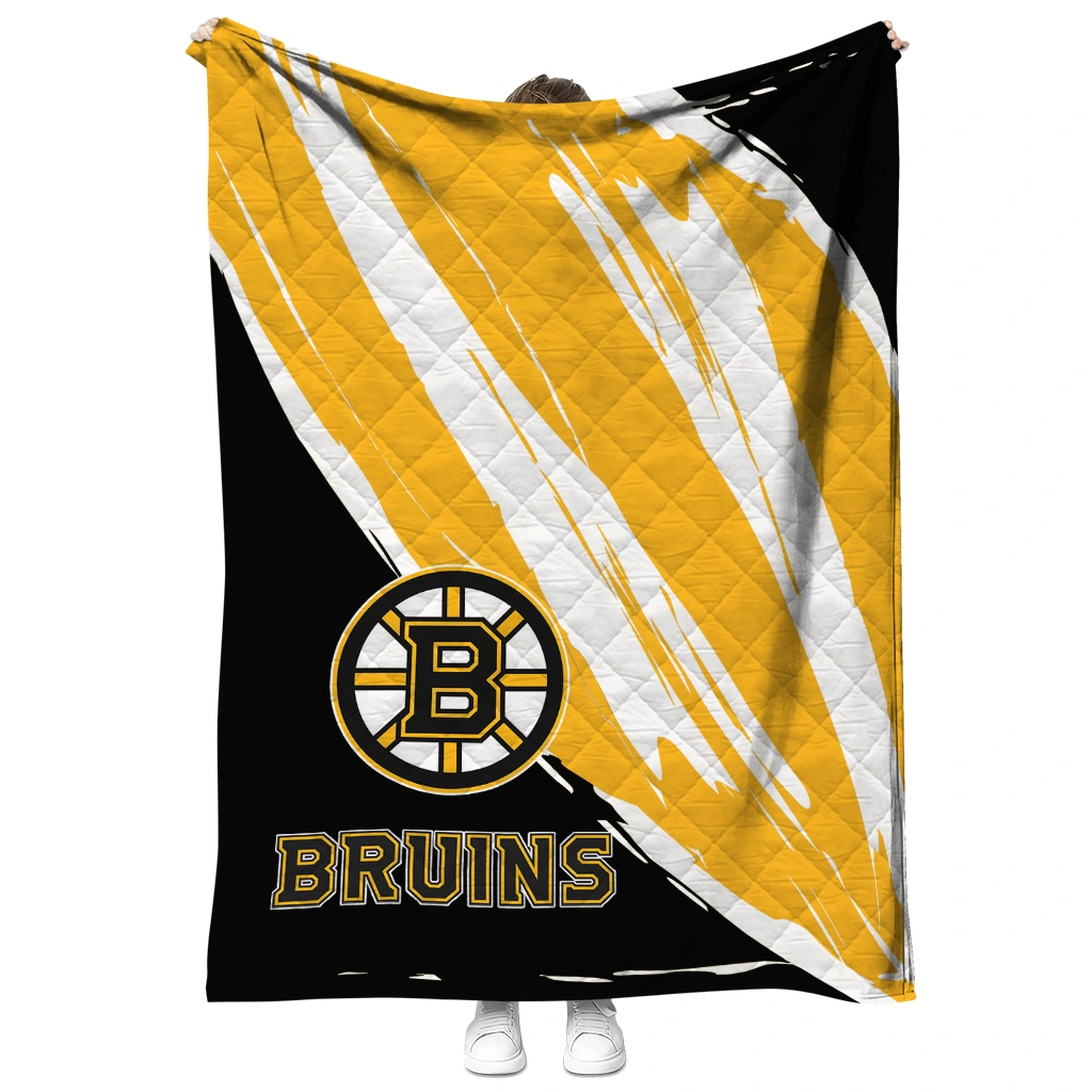 Boston Bruins Stroke Art Gold White Quilt Blanket
