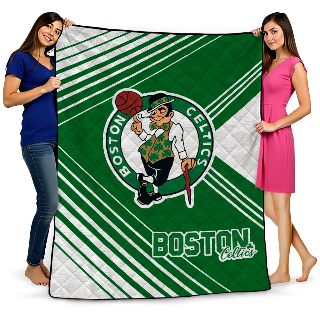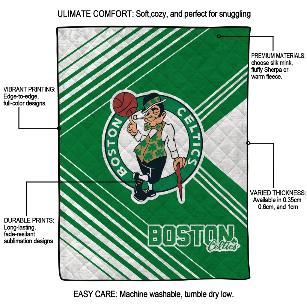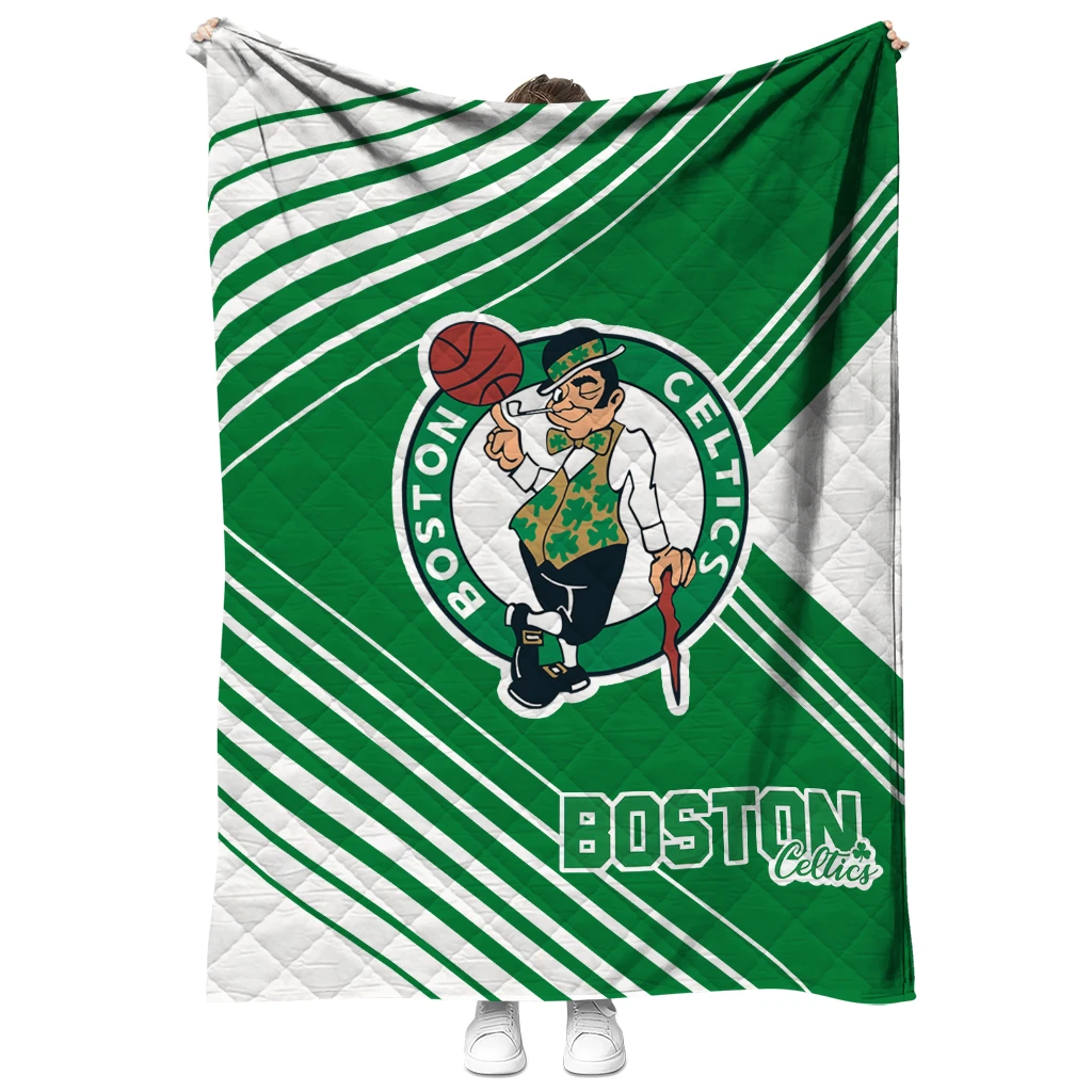 Wrap yourself in warmth and pride with the Boston Celtics Arrow Layers Green Quilt Blanket from the Boston Celtics Blankets collection at Yes That Blanket. Made from 100% premium quilting-weight polyester blended with a touch of microfiber, this quilt offers a smooth, soft finish you’ll love. Choose between two quilting styles—Stipple or Diagonal—and enjoy the comfort of a cotton-filled layer inside that adds extra coziness for every season. The border is available in classic black or white, giving your design a clean, timeless edge.