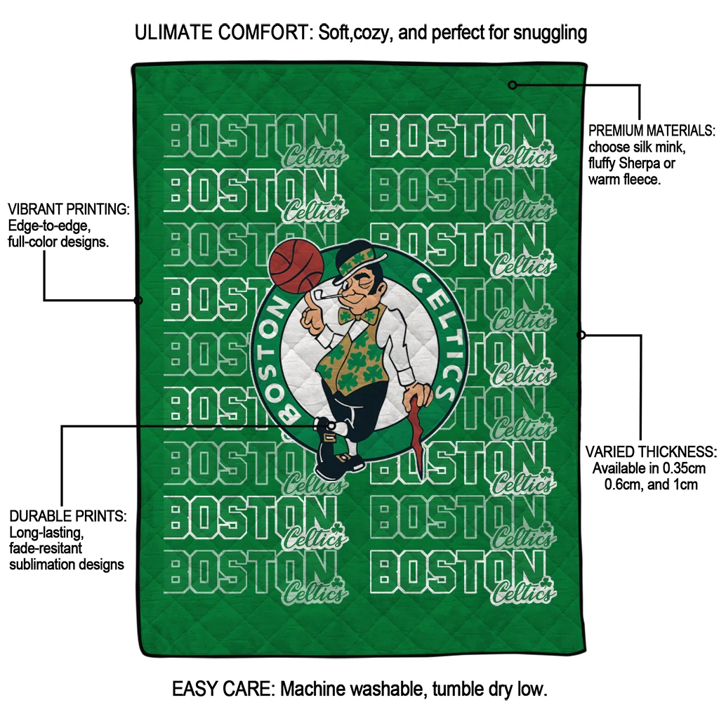 Wrap yourself in warmth and pride with the Boston Celtics Bold Red Green Quilt Blanket from the Boston Celtics Blankets collection at Yes That Blanket. Made from 100% premium quilting-weight polyester blended with a touch of microfiber, this quilt offers a smooth, soft finish you’ll love. Choose between two quilting styles—Stipple or Diagonal—and enjoy the comfort of a cotton-filled layer inside that adds extra coziness for every season. The border is available in classic black or white, giving your design a clean, timeless edge.