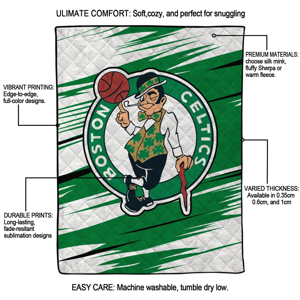 Boston Celtics Wild Lines Green White Quilt Blanket