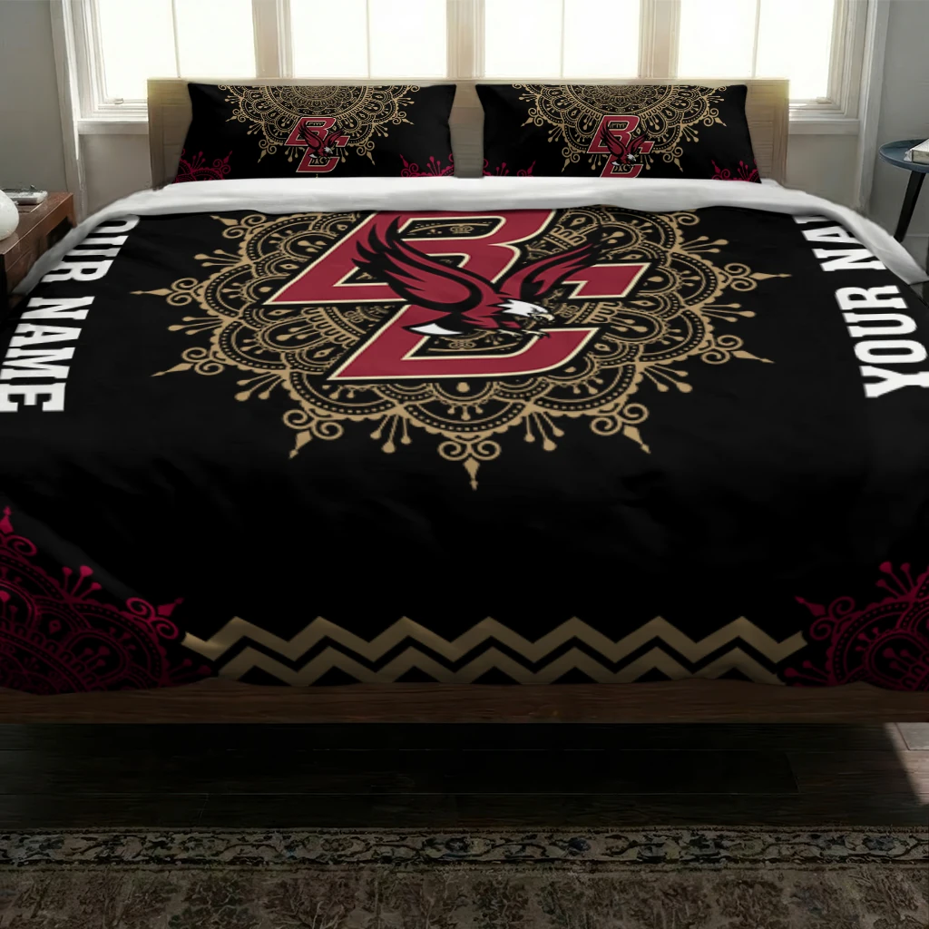 Boston College Eagles Bedding Set – Customized Mandala Lacework Black Red