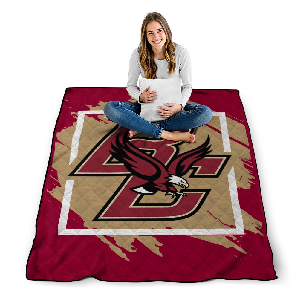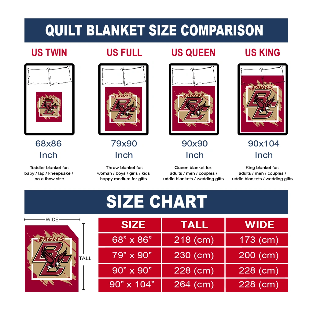 Wrap yourself in warmth and pride with the Boston College Eagles Block Border Maroon Quilt Blanket from the Boston College Eagles Blankets collection at Yes That Blanket. Made from 100% premium quilting-weight polyester blended with a touch of microfiber, this quilt offers a smooth, soft finish you’ll love. Choose between two quilting styles—Stipple or Diagonal—and enjoy the comfort of a cotton-filled layer inside that adds extra coziness for every season. The border is available in classic black or white, giving your design a clean, timeless edge.