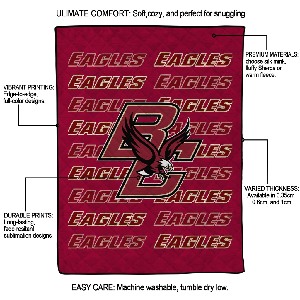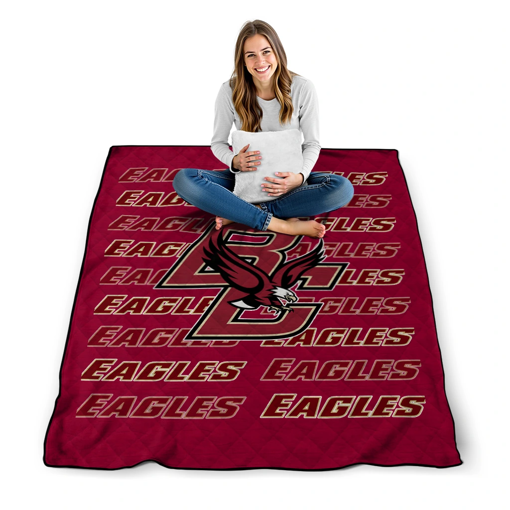 Wrap yourself in warmth and pride with the Boston College Eagles Bold Red Maroon Quilt Blanket from the Boston College Eagles Blankets collection at Yes That Blanket. Made from 100% premium quilting-weight polyester blended with a touch of microfiber, this quilt offers a smooth, soft finish you’ll love. Choose between two quilting styles—Stipple or Diagonal—and enjoy the comfort of a cotton-filled layer inside that adds extra coziness for every season. The border is available in classic black or white, giving your design a clean, timeless edge.