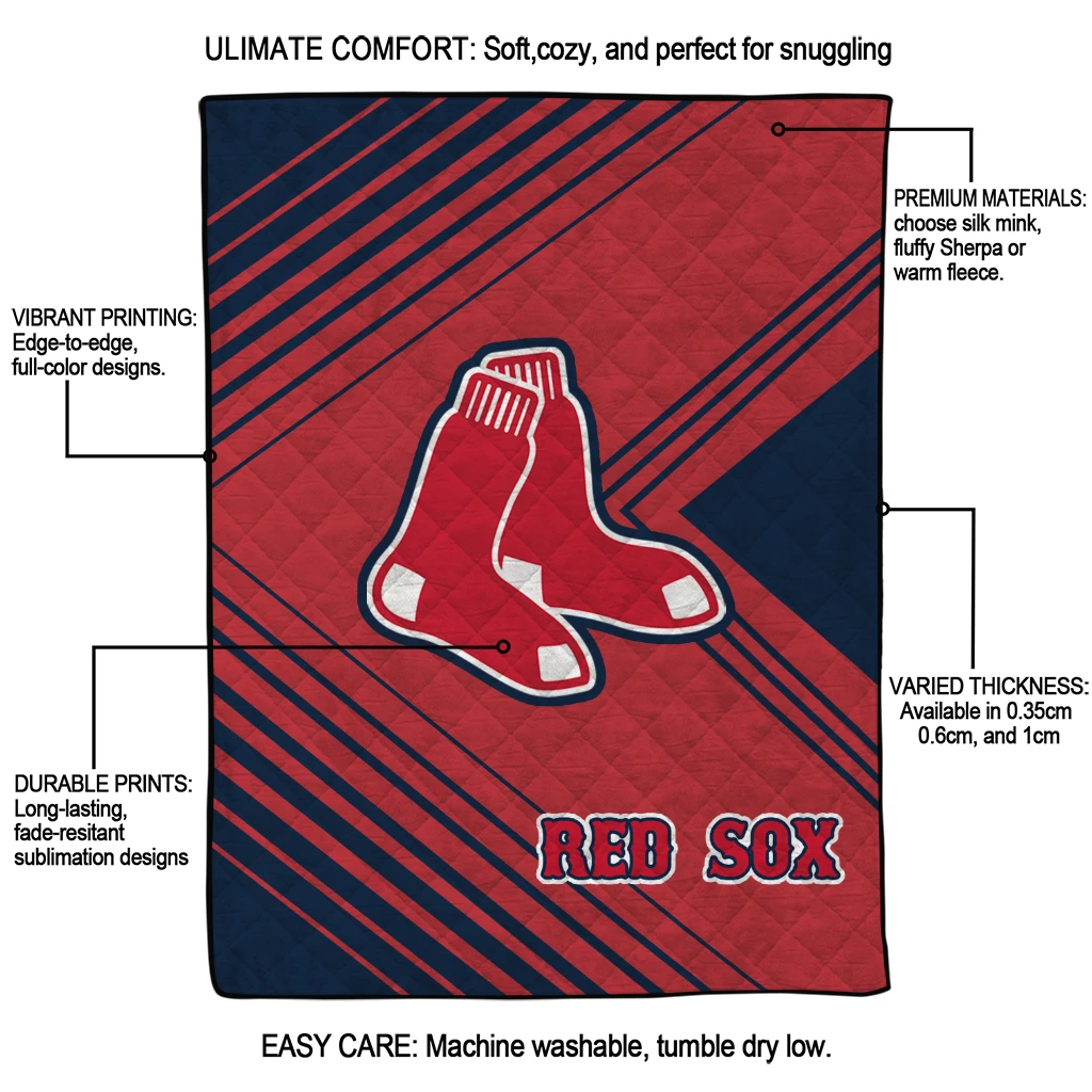 Wrap yourself in warmth and pride with the Boston Red Sox Arrow Layers Red Quilt Blanket from the Boston Red Sox Blankets collection at Yes That Blanket. Made from 100% premium quilting-weight polyester blended with a touch of microfiber, this quilt offers a smooth, soft finish you’ll love. Choose between two quilting styles—Stipple or Diagonal—and enjoy the comfort of a cotton-filled layer inside that adds extra coziness for every season. The border is available in classic black or white, giving your design a clean, timeless edge.