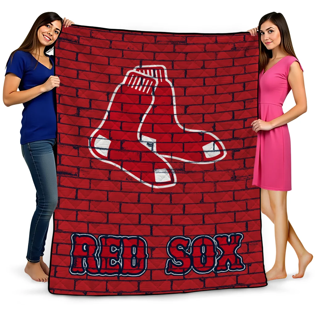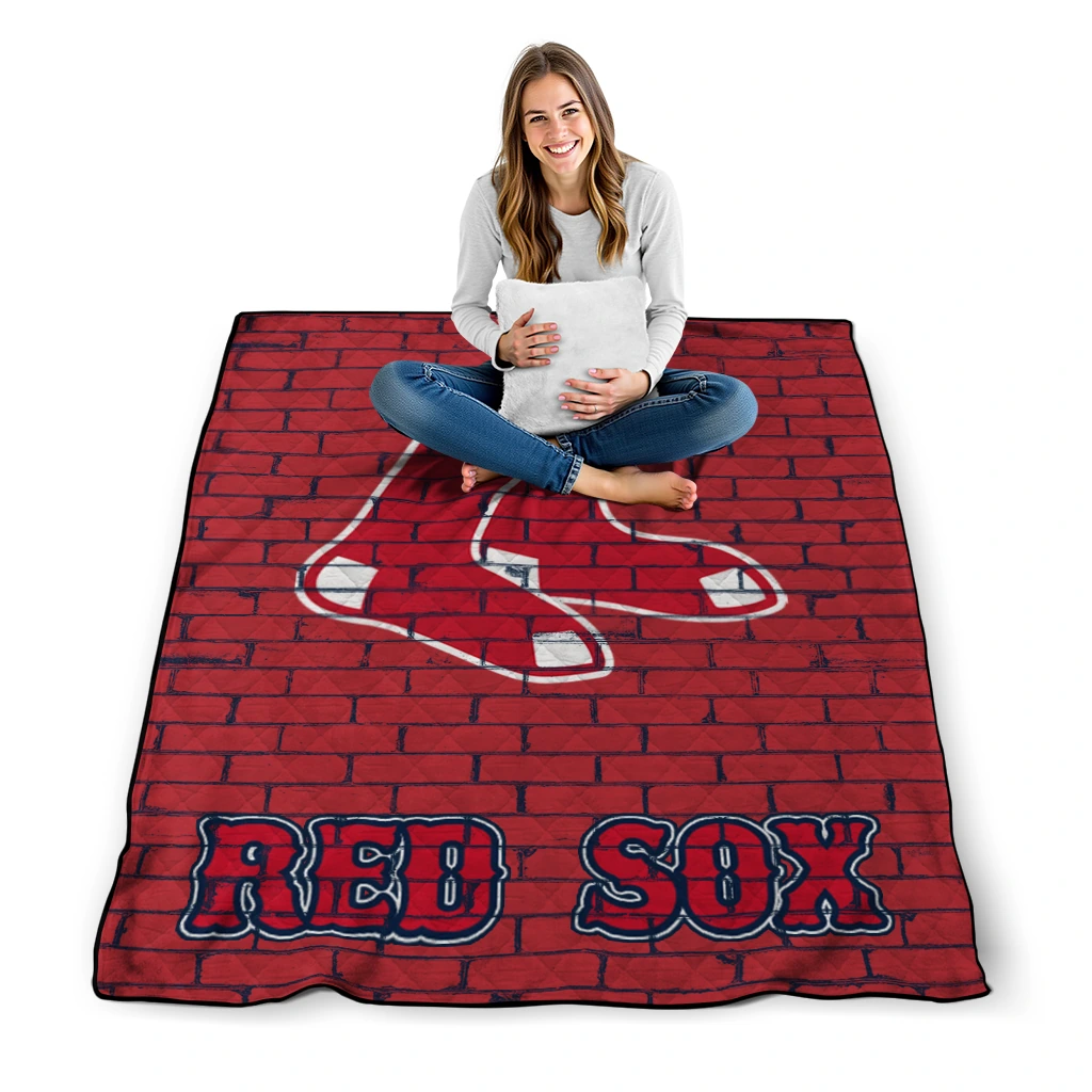 Boston Red Sox Brick Grid Red Quilt Blanket