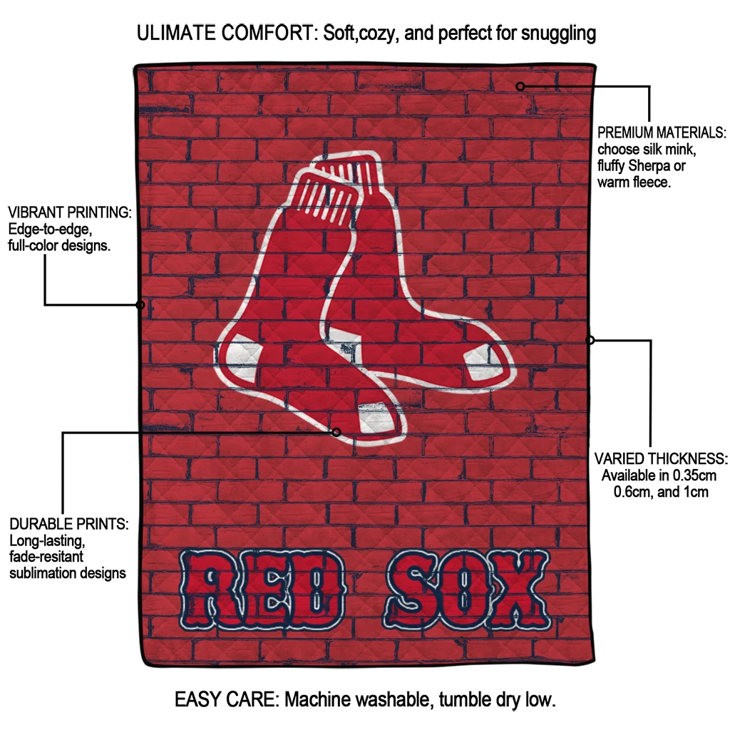 Wrap yourself in warmth and pride with the Boston Red Sox Brick Grid Red Quilt Blanket from the Boston Red Sox Blankets collection at Yes That Blanket. Made from 100% premium quilting-weight polyester blended with a touch of microfiber, this quilt offers a smooth, soft finish you’ll love. Choose between two quilting styles—Stipple or Diagonal—and enjoy the comfort of a cotton-filled layer inside that adds extra coziness for every season. The border is available in classic black or white, giving your design a clean, timeless edge.