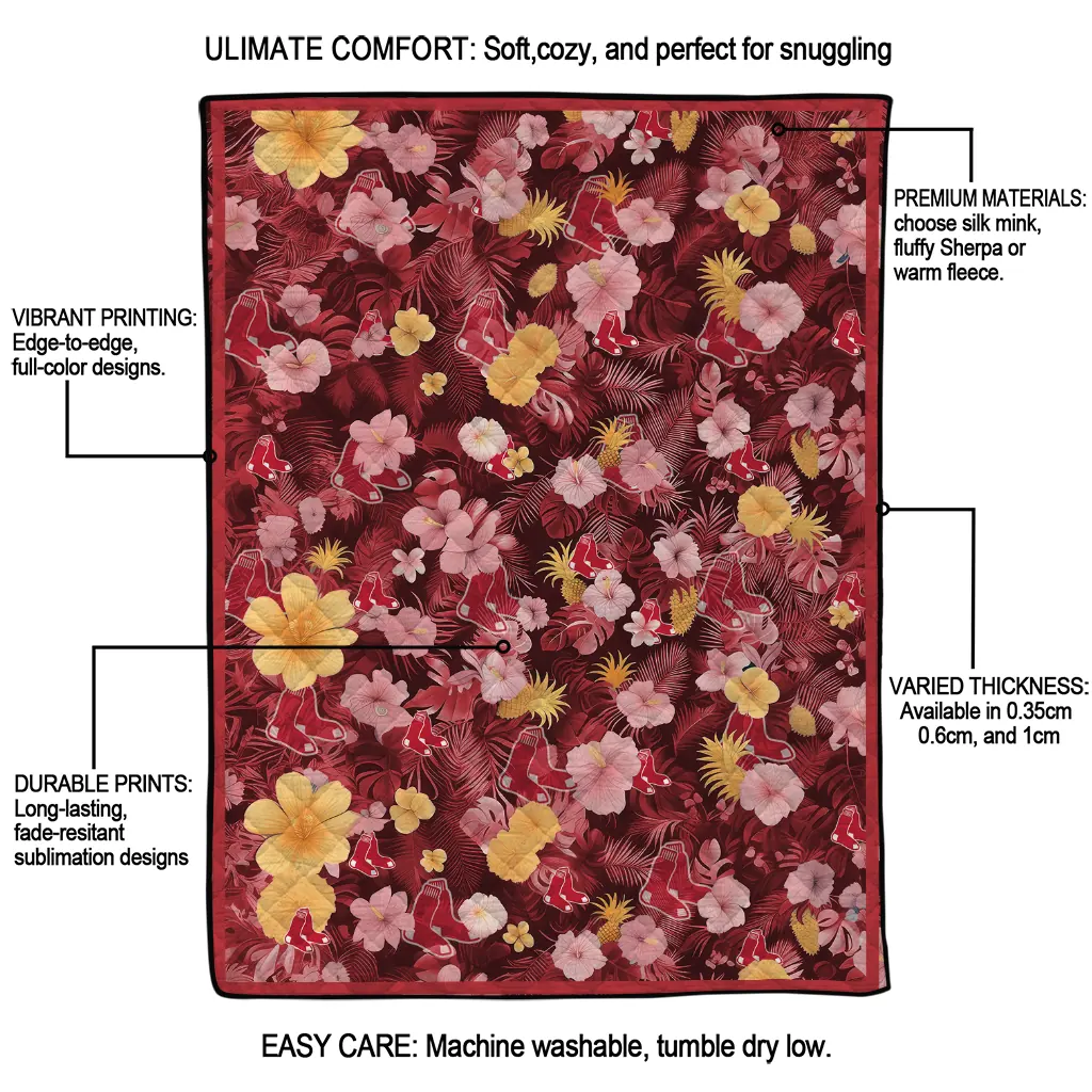 Boston Red Sox Hibiscus Foliage Red Quilt Blanket