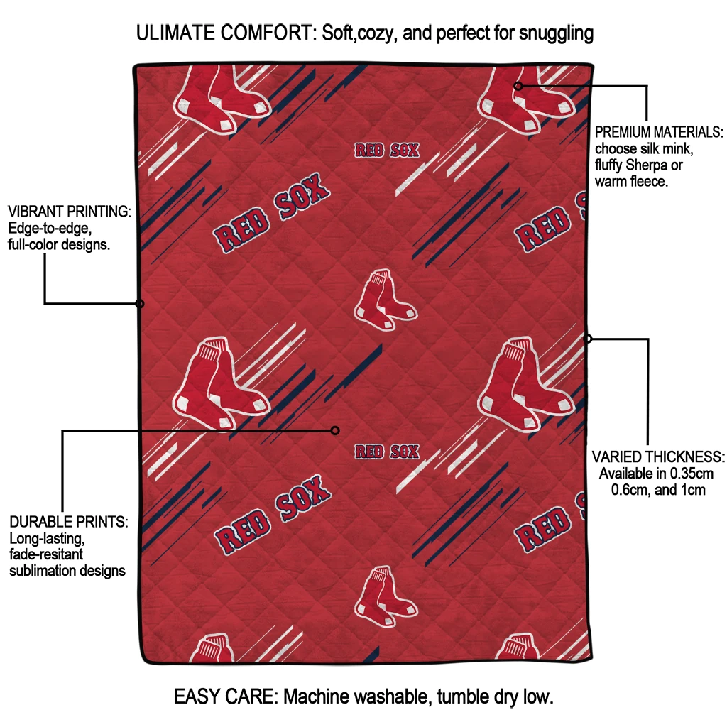 Wrap yourself in warmth and pride with the Boston Red Sox Sketch Lines Red Quilt Blanket from the Boston Red Sox Blankets collection at Yes That Blanket. Made from 100% premium quilting-weight polyester blended with a touch of microfiber, this quilt offers a smooth, soft finish you’ll love. Choose between two quilting styles—Stipple or Diagonal—and enjoy the comfort of a cotton-filled layer inside that adds extra coziness for every season. The border is available in classic black or white, giving your design a clean, timeless edge.