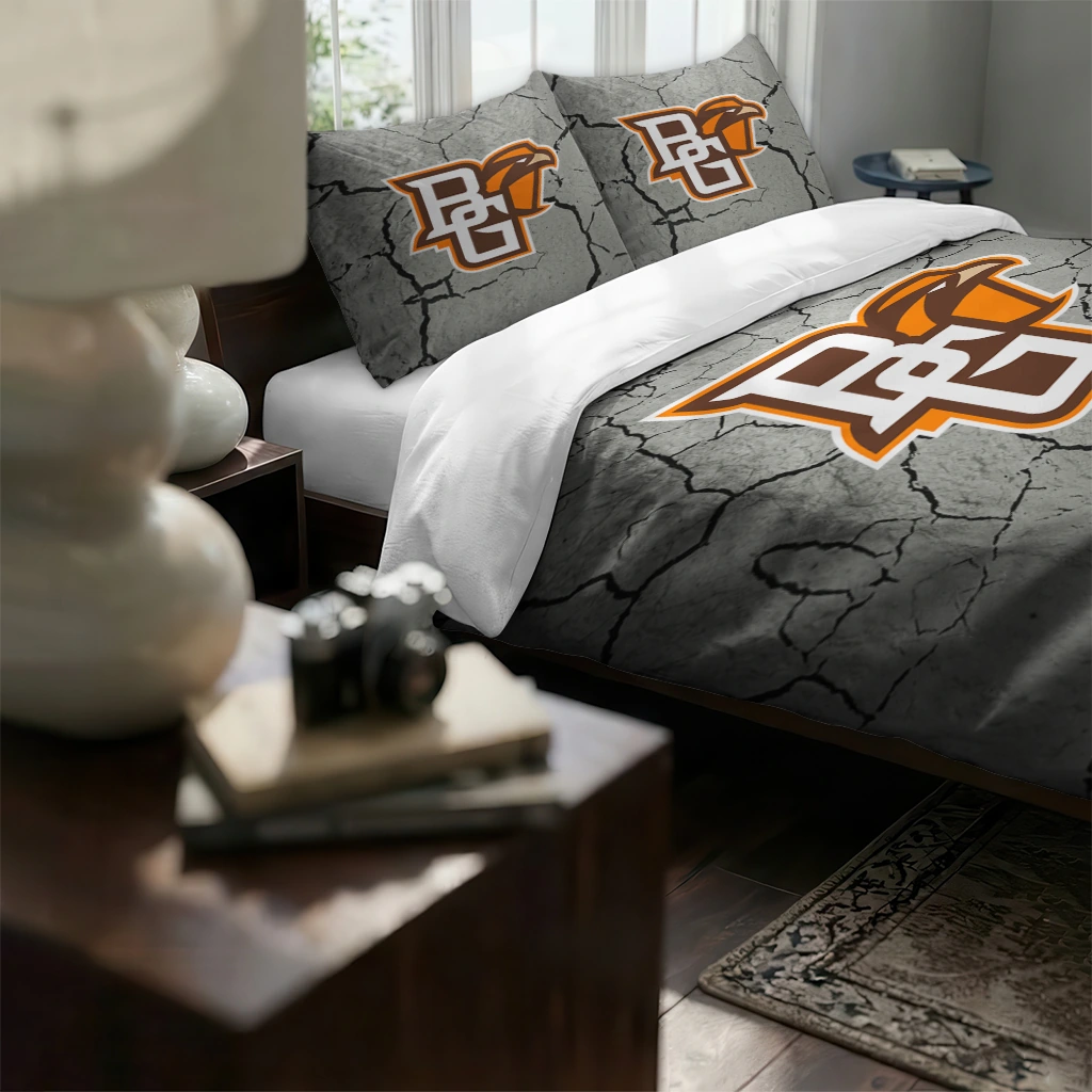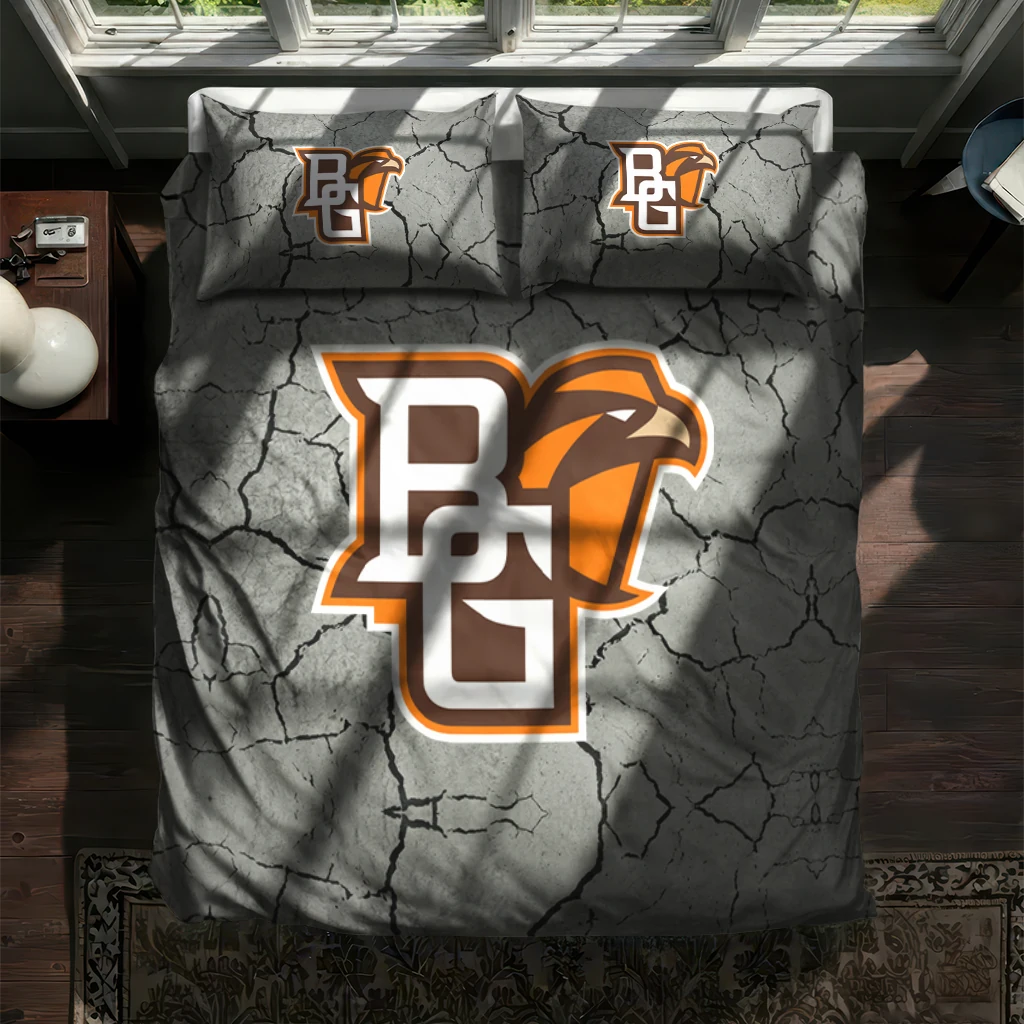 Bowling Green Falcons Bedding Set – Cracked Texture Gray Orange