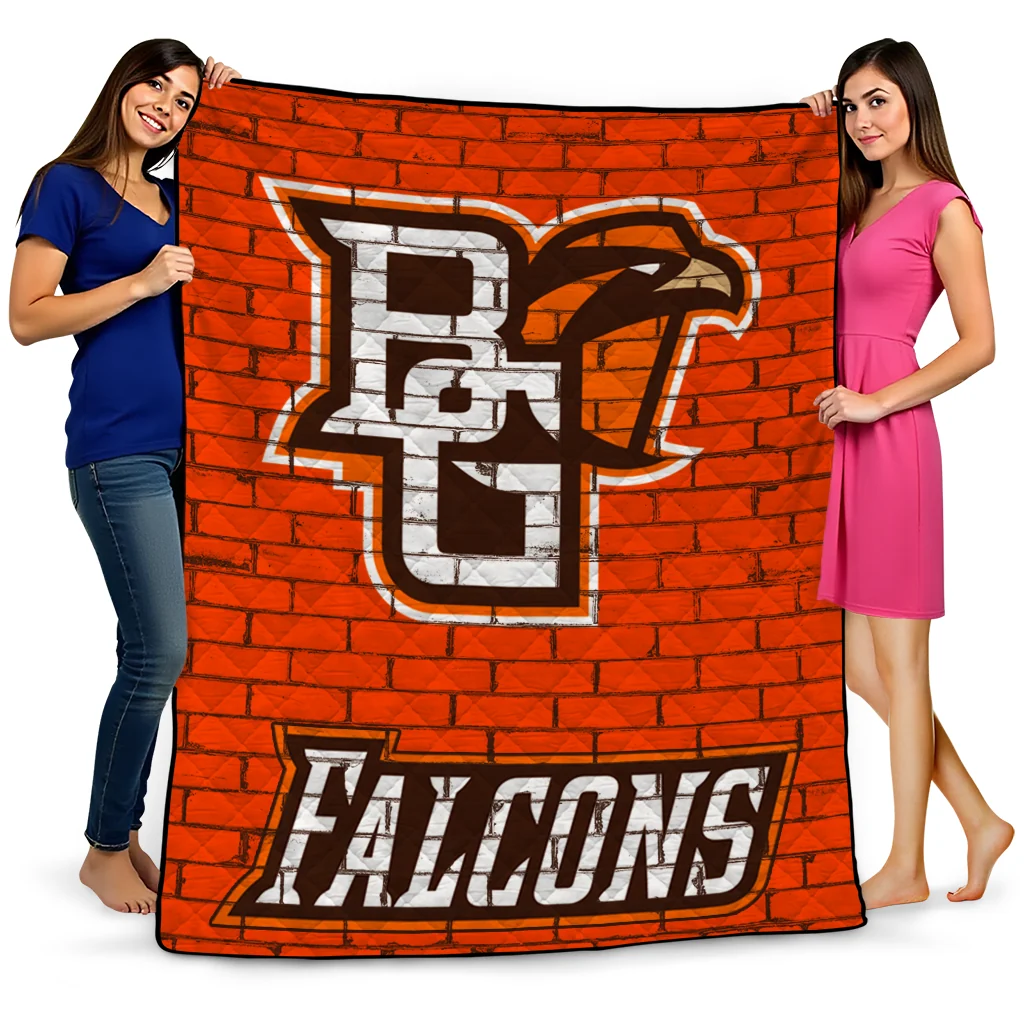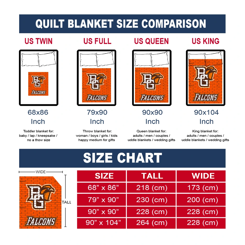 Wrap yourself in warmth and pride with the Bowling Green Falcons Brick Grid Orange Quilt Blanket from the Bowling Green Falcons Blankets collection at Yes That Blanket. Made from 100% premium quilting-weight polyester blended with a touch of microfiber, this quilt offers a smooth, soft finish you’ll love. Choose between two quilting styles—Stipple or Diagonal—and enjoy the comfort of a cotton-filled layer inside that adds extra coziness for every season. The border is available in classic black or white, giving your design a clean, timeless edge.