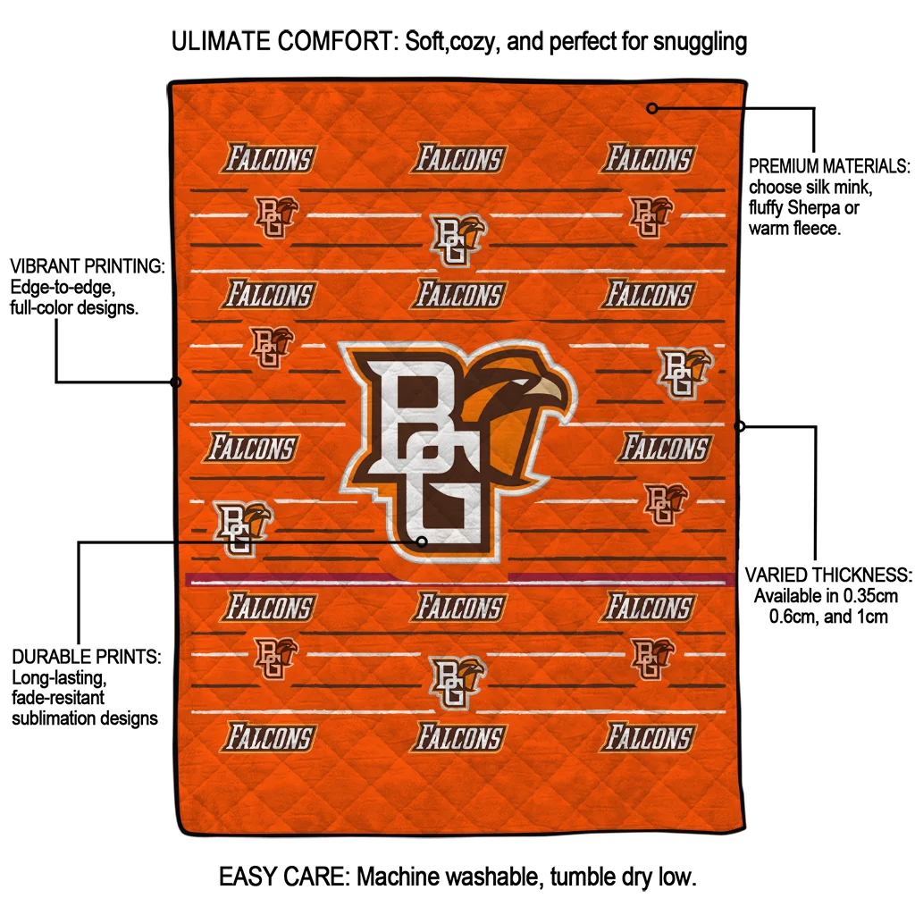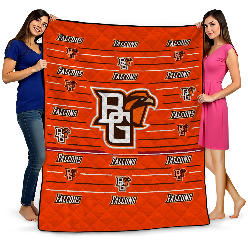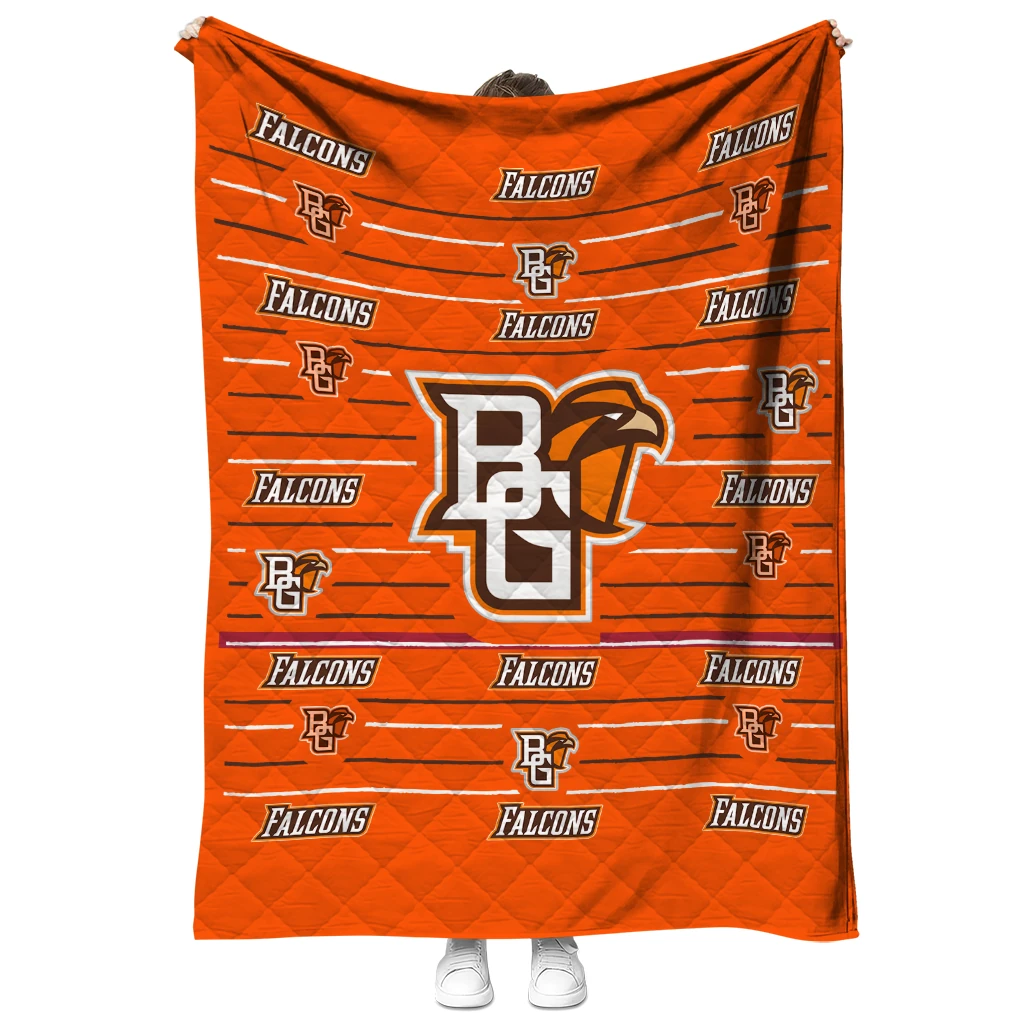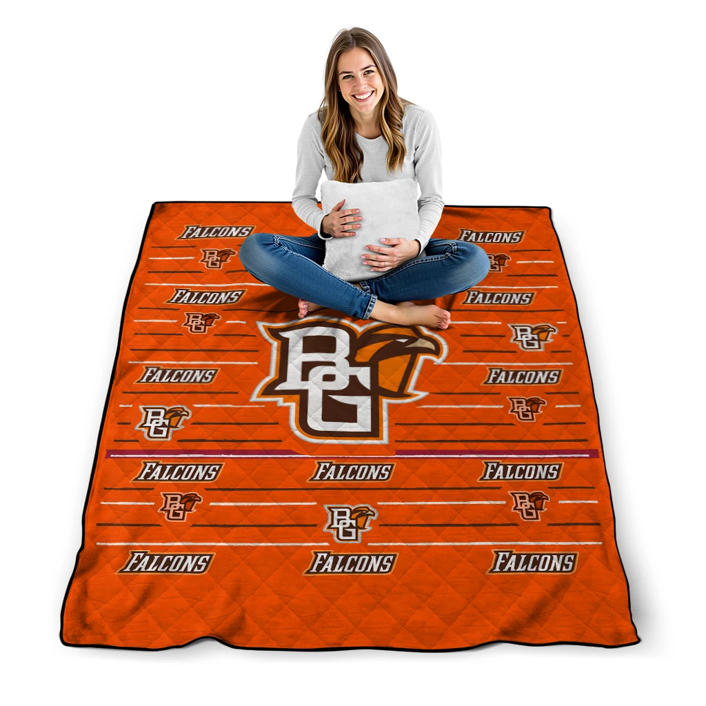 Wrap yourself in warmth and pride with the Bowling Green Falcons Handdrawn Stripes Orange Quilt Blanket from the Bowling Green Falcons Blankets collection at Yes That Blanket. Made from 100% premium quilting-weight polyester blended with a touch of microfiber, this quilt offers a smooth, soft finish you’ll love. Choose between two quilting styles—Stipple or Diagonal—and enjoy the comfort of a cotton-filled layer inside that adds extra coziness for every season. The border is available in classic black or white, giving your design a clean, timeless edge.
