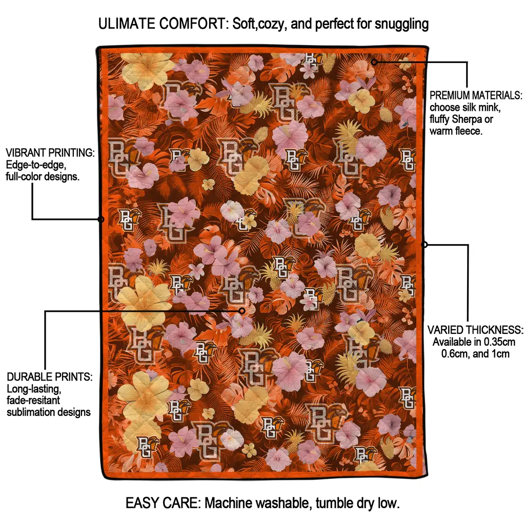 Bowling Green Falcons Hibiscus Foliage Orange Quilt Blanket