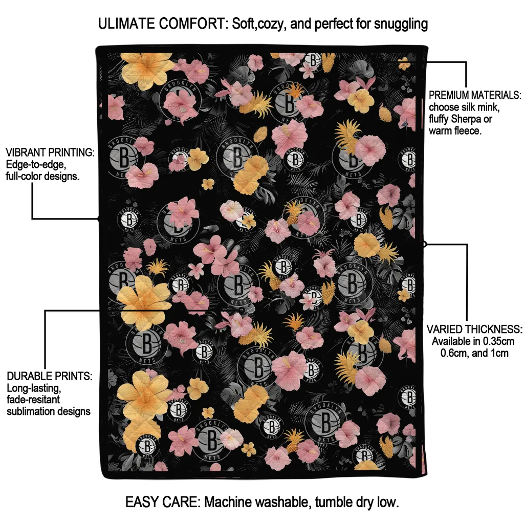 Wrap yourself in warmth and pride with the Brooklyn Nets Hibiscus Foliage Black Quilt Blanket from the Brooklyn Nets Blankets collection at Yes That Blanket. Made from 100% premium quilting-weight polyester blended with a touch of microfiber, this quilt offers a smooth, soft finish you’ll love. Choose between two quilting styles—Stipple or Diagonal—and enjoy the comfort of a cotton-filled layer inside that adds extra coziness for every season. The border is available in classic black or white, giving your design a clean, timeless edge.