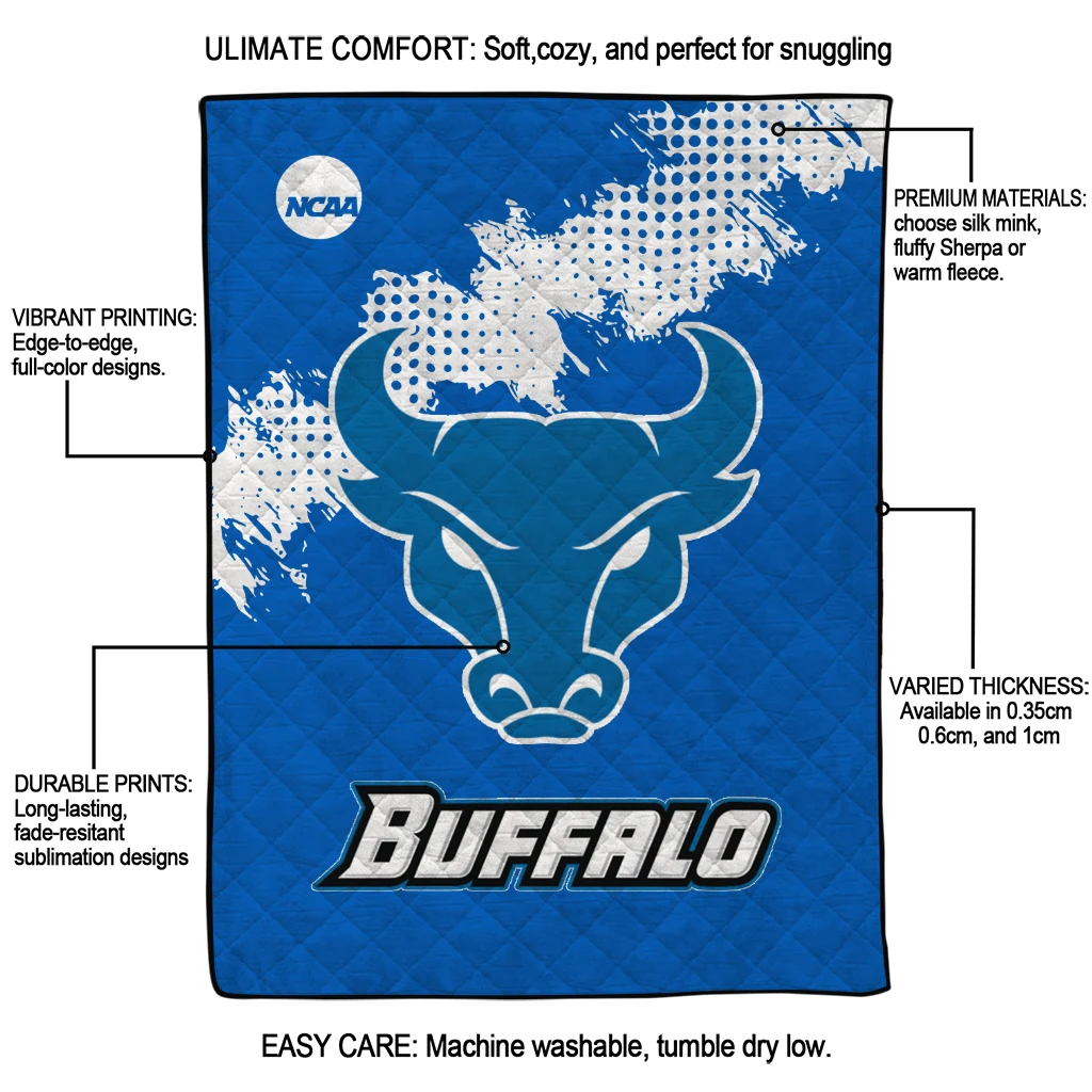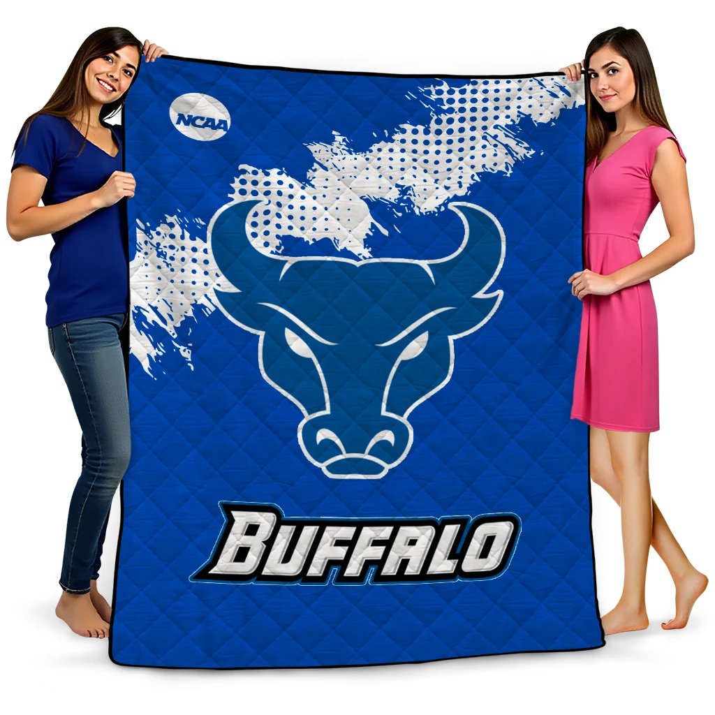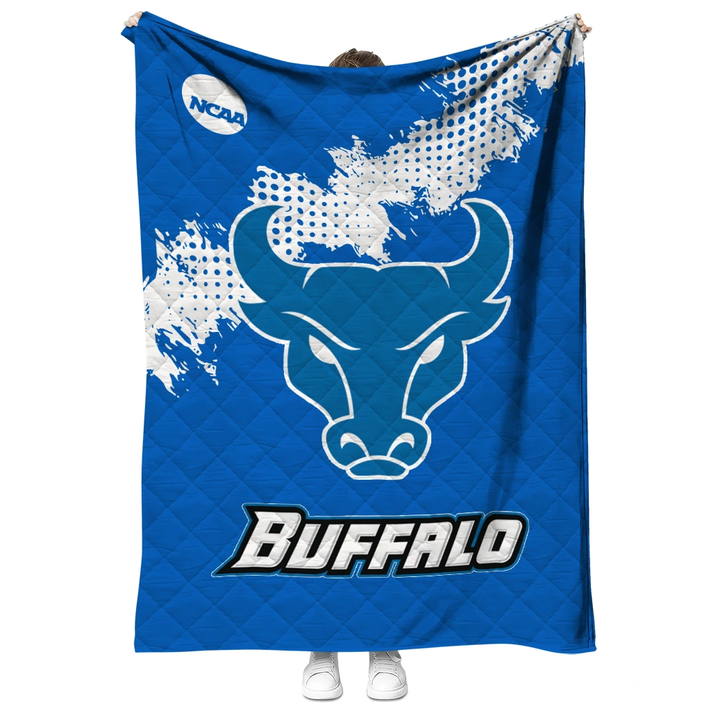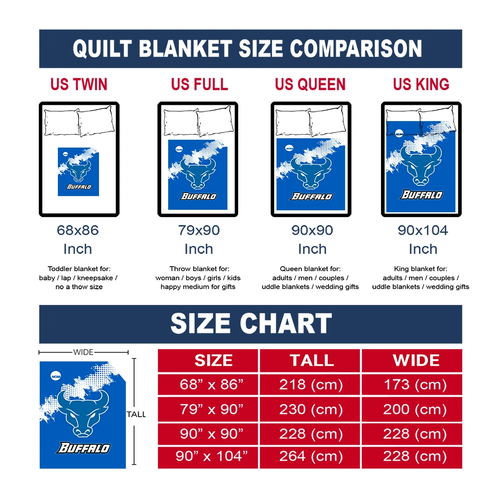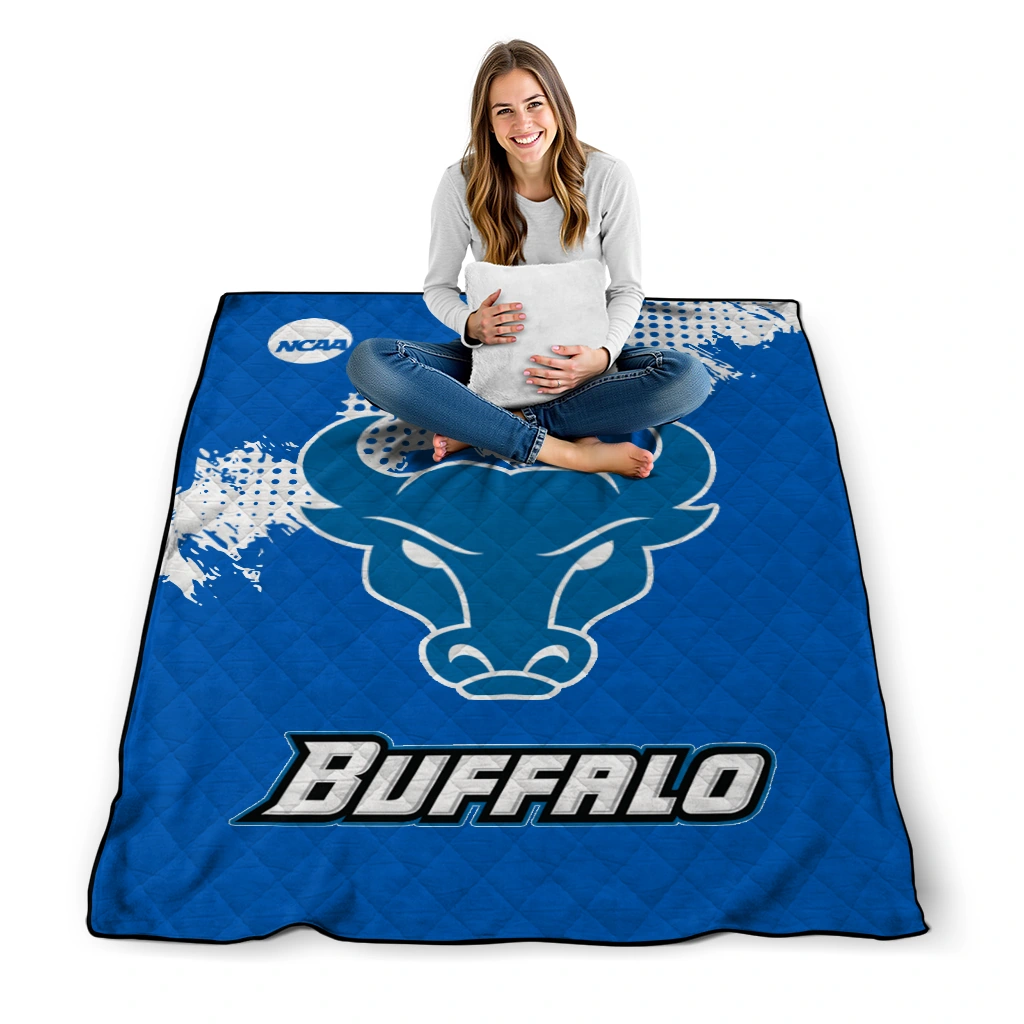 Wrap yourself in warmth and pride with the Buffalo Bulls Paint Trail Royal Blue Quilt Blanket from the Buffalo Bulls Blankets collection at Yes That Blanket. Made from 100% premium quilting-weight polyester blended with a touch of microfiber, this quilt offers a smooth, soft finish you’ll love. Choose between two quilting styles—Stipple or Diagonal—and enjoy the comfort of a cotton-filled layer inside that adds extra coziness for every season. The border is available in classic black or white, giving your design a clean, timeless edge.