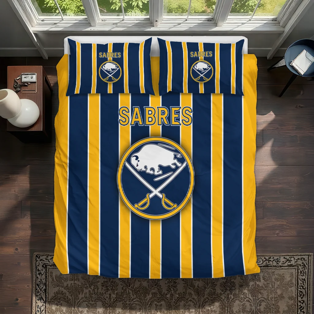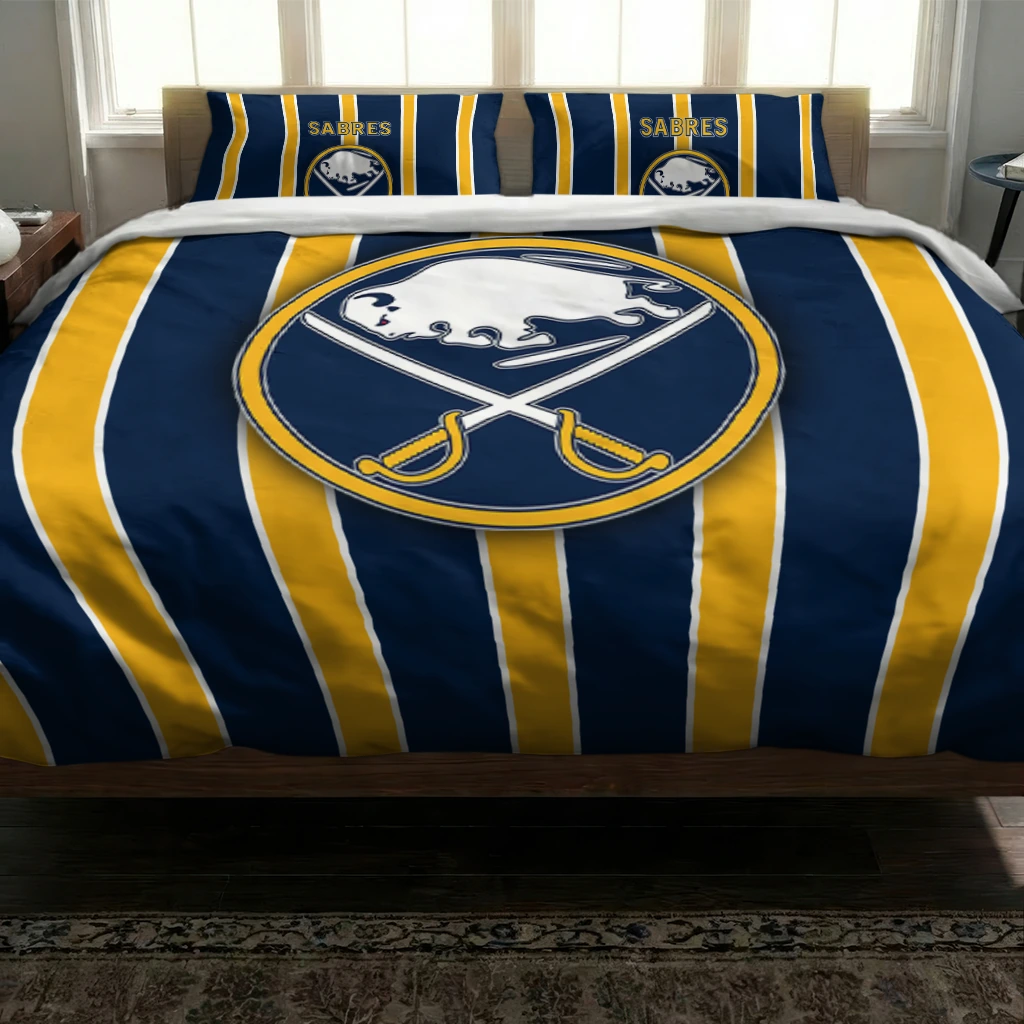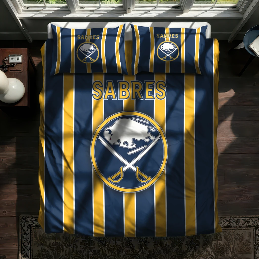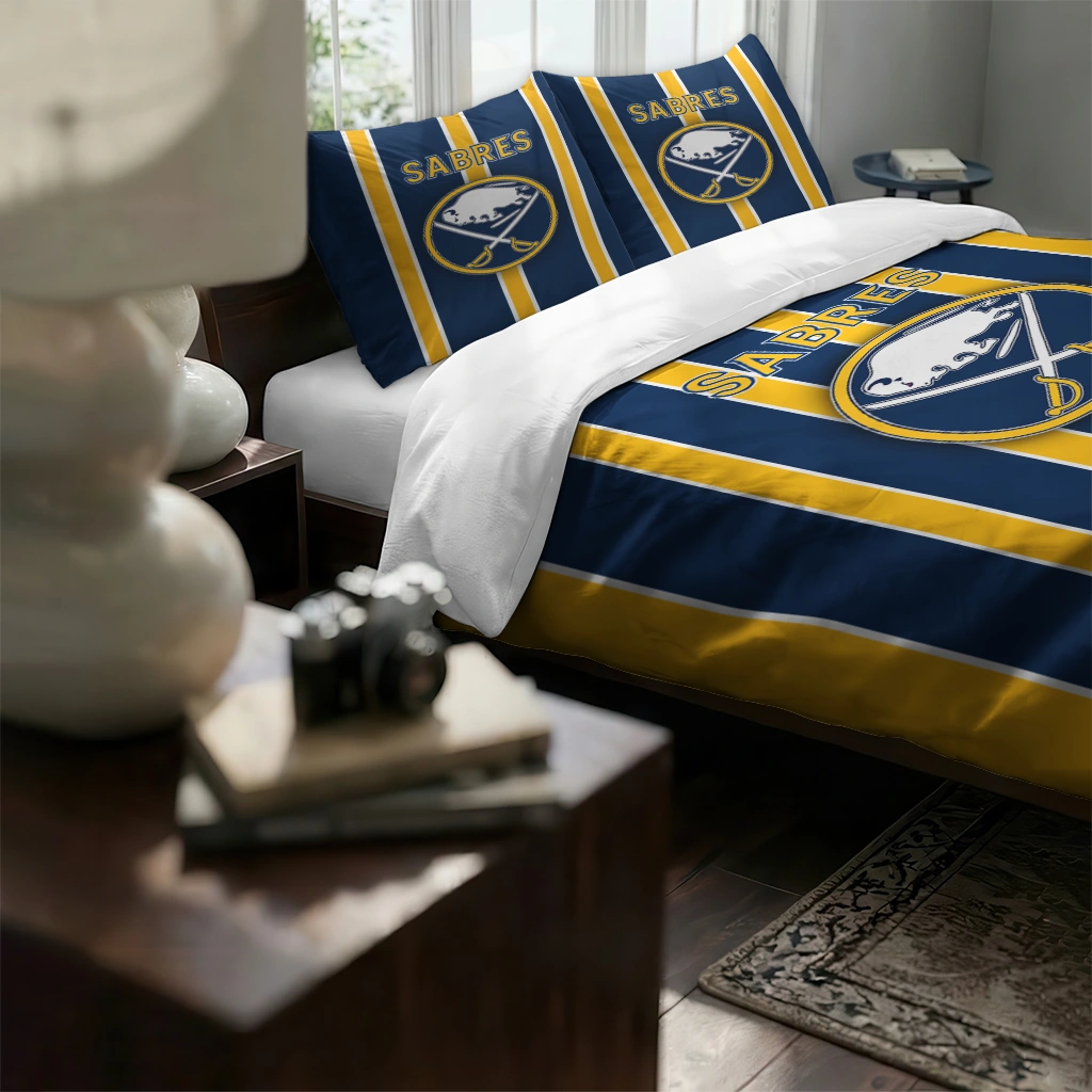 Buffalo Sabres Bedding Set – Stripe Style Blue Yellow