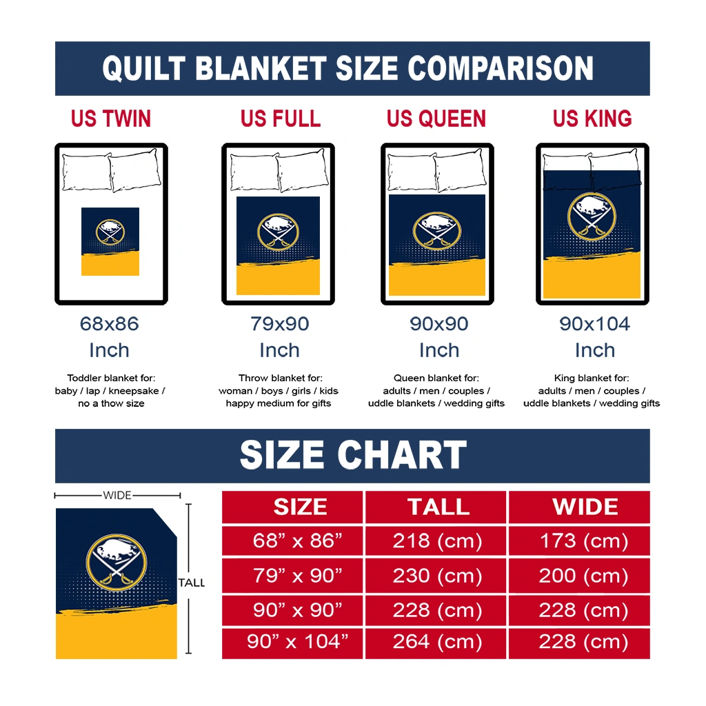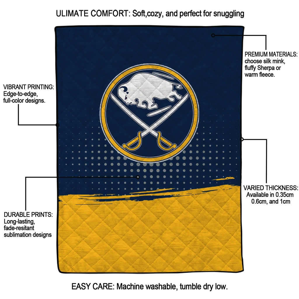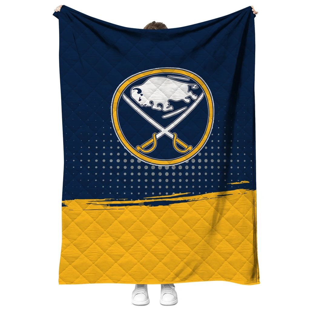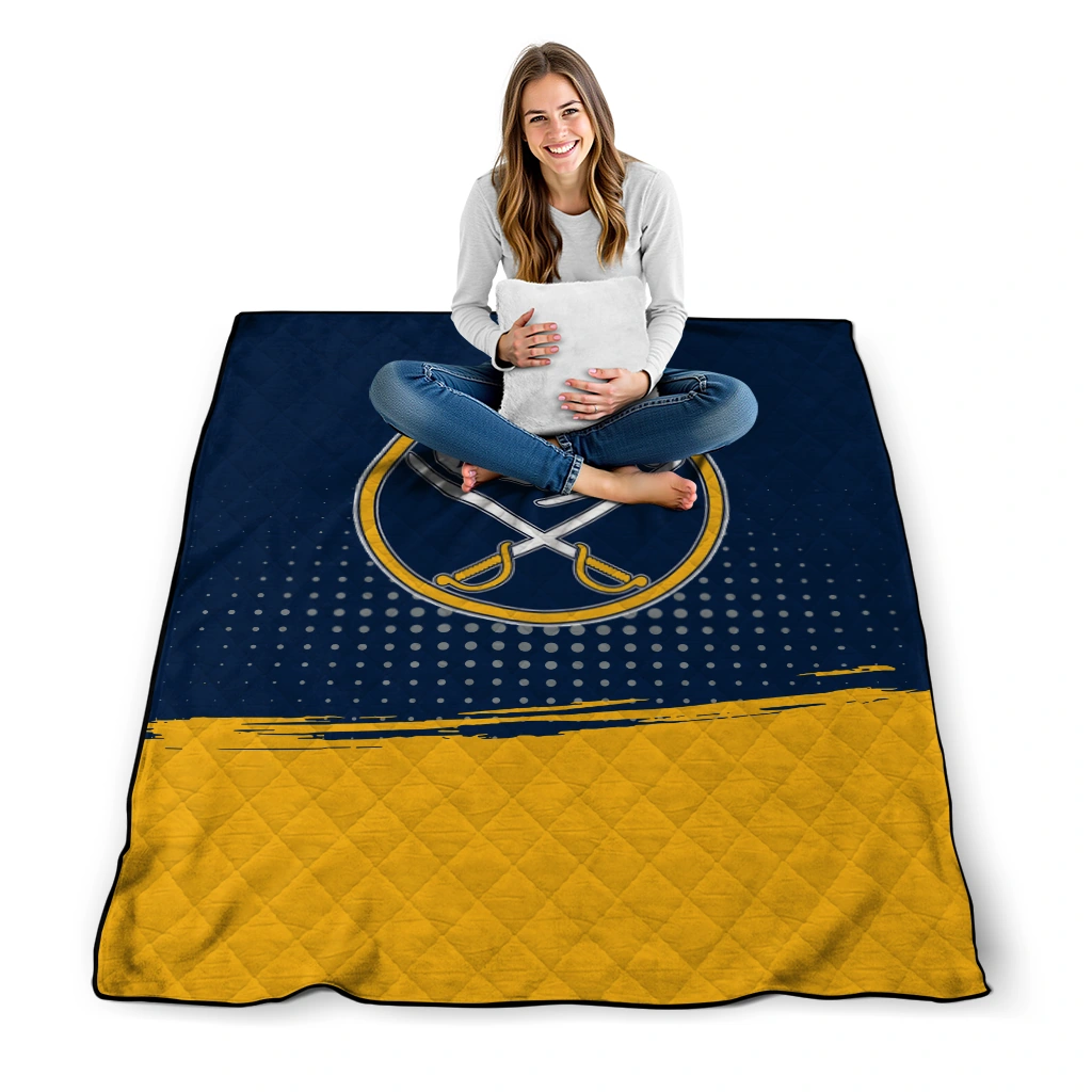 Wrap yourself in warmth and pride with the Buffalo Sabres Dot Illusion Navy Blue Quilt Blanket from the Buffalo Sabres Blankets collection at Yes That Blanket. Made from 100% premium quilting-weight polyester blended with a touch of microfiber, this quilt offers a smooth, soft finish you’ll love. Choose between two quilting styles—Stipple or Diagonal—and enjoy the comfort of a cotton-filled layer inside that adds extra coziness for every season. The border is available in classic black or white, giving your design a clean, timeless edge.