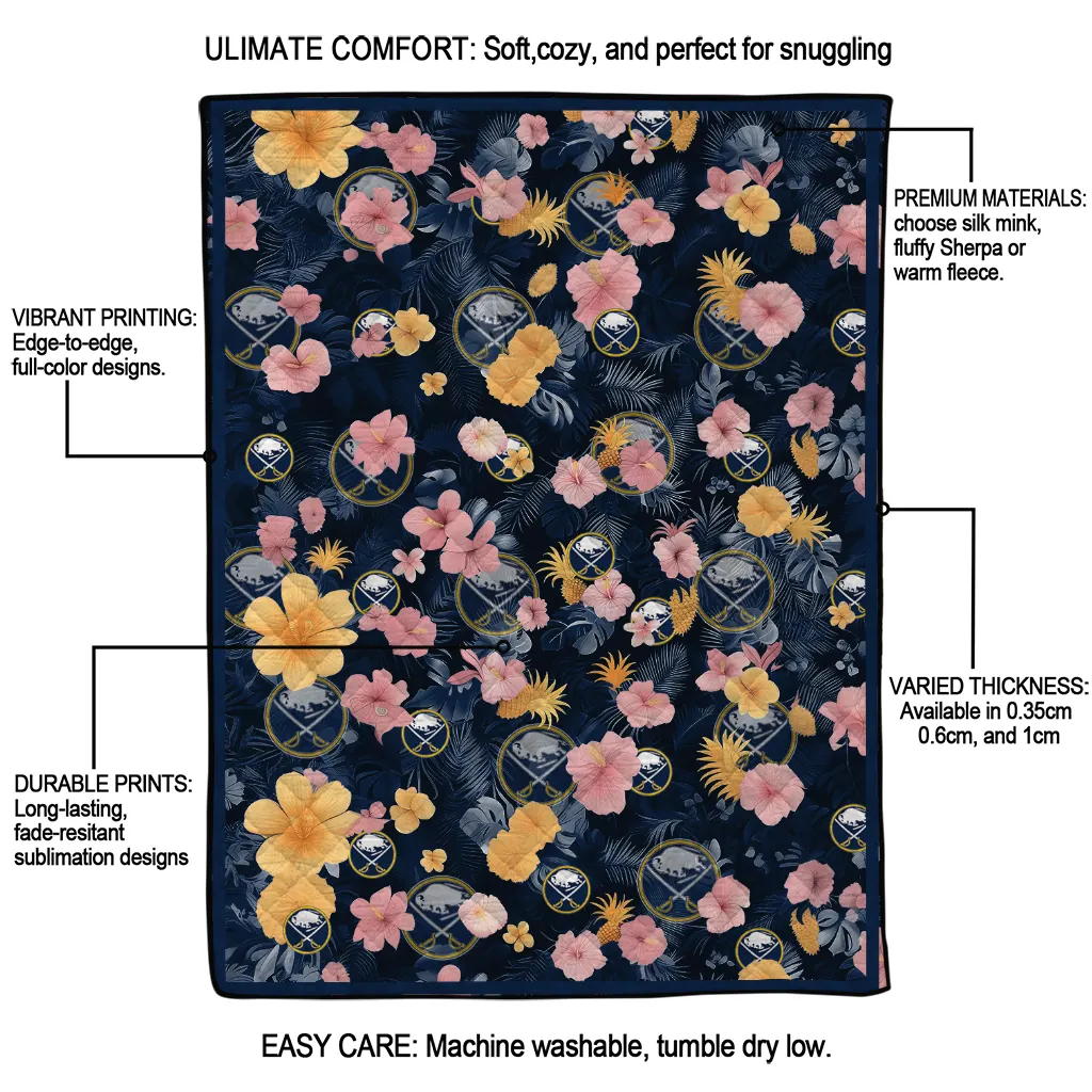 Buffalo Sabres Hibiscus Foliage Navy Blue Quilt Blanket
