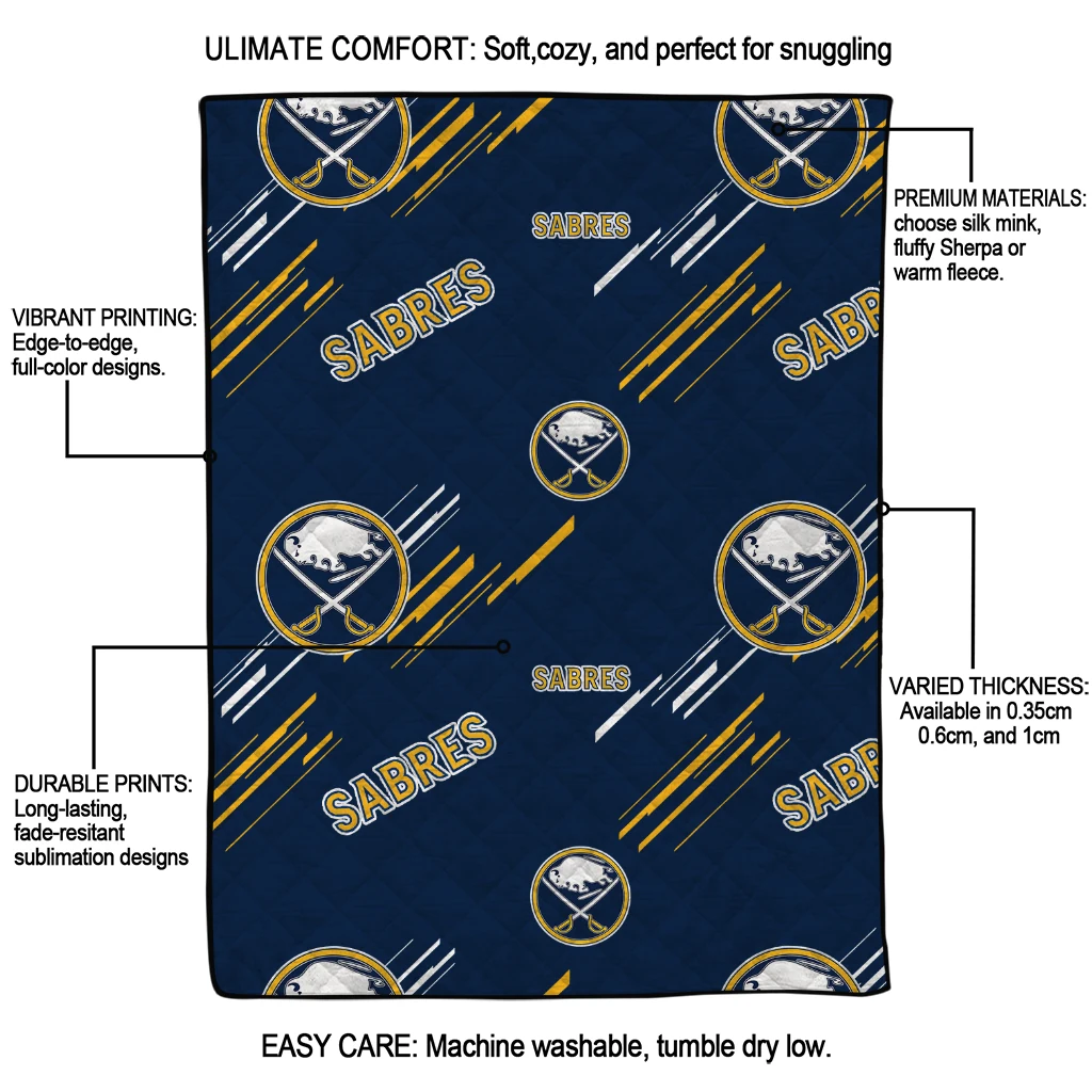 Wrap yourself in warmth and pride with the Buffalo Sabres Sketch Lines Navy Blue Quilt Blanket from the Buffalo Sabres Blankets collection at Yes That Blanket. Made from 100% premium quilting-weight polyester blended with a touch of microfiber, this quilt offers a smooth, soft finish you’ll love. Choose between two quilting styles—Stipple or Diagonal—and enjoy the comfort of a cotton-filled layer inside that adds extra coziness for every season. The border is available in classic black or white, giving your design a clean, timeless edge.