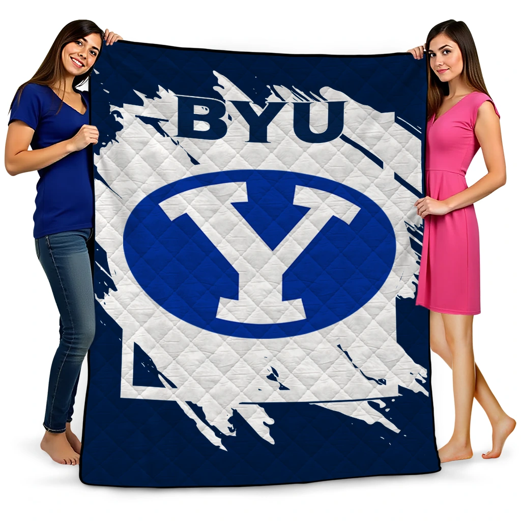 Wrap yourself in warmth and pride with the BYU Cougars Block Border Blue Quilt Blanket from the BYU Cougars Blankets collection at Yes That Blanket. Made from 100% premium quilting-weight polyester blended with a touch of microfiber, this quilt offers a smooth, soft finish you’ll love. Choose between two quilting styles—Stipple or Diagonal—and enjoy the comfort of a cotton-filled layer inside that adds extra coziness for every season. The border is available in classic black or white, giving your design a clean, timeless edge.