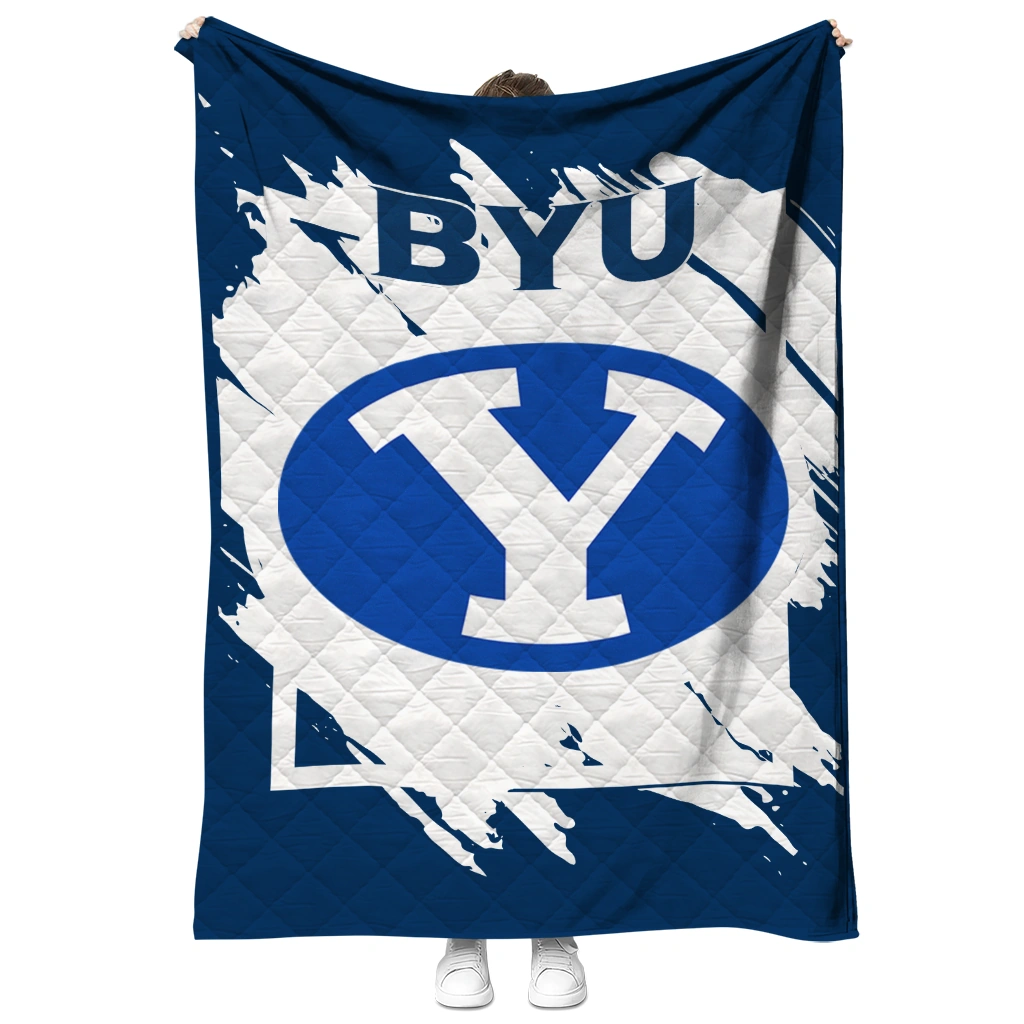 BYU Cougars Block Border Blue Quilt Blanket