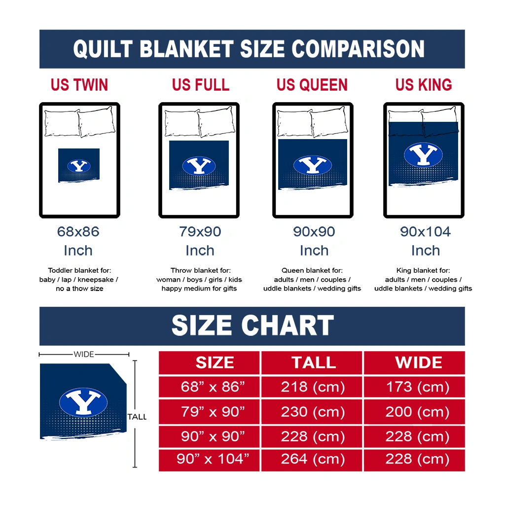 Wrap yourself in warmth and pride with the BYU Cougars Dot Illusion Blue Quilt Blanket from the BYU Cougars Blankets collection at Yes That Blanket. Made from 100% premium quilting-weight polyester blended with a touch of microfiber, this quilt offers a smooth, soft finish you’ll love. Choose between two quilting styles—Stipple or Diagonal—and enjoy the comfort of a cotton-filled layer inside that adds extra coziness for every season. The border is available in classic black or white, giving your design a clean, timeless edge.