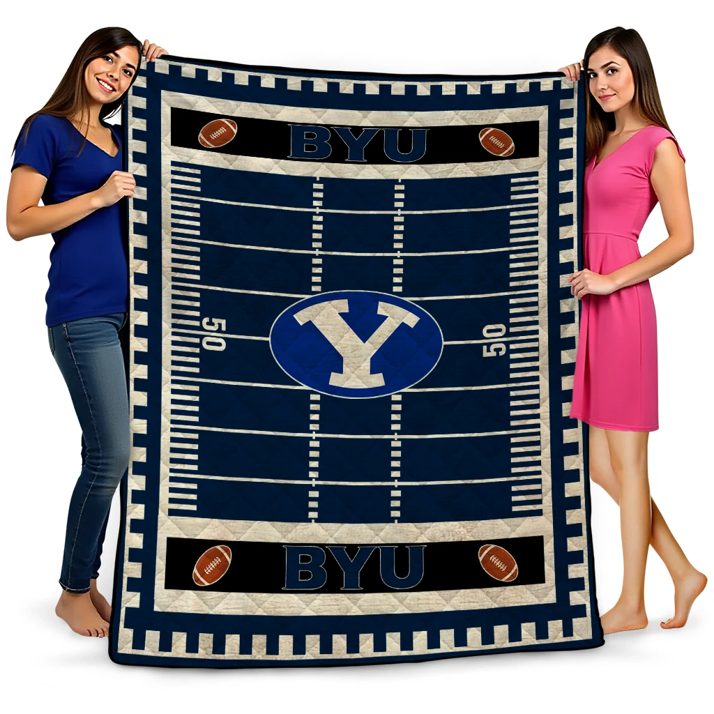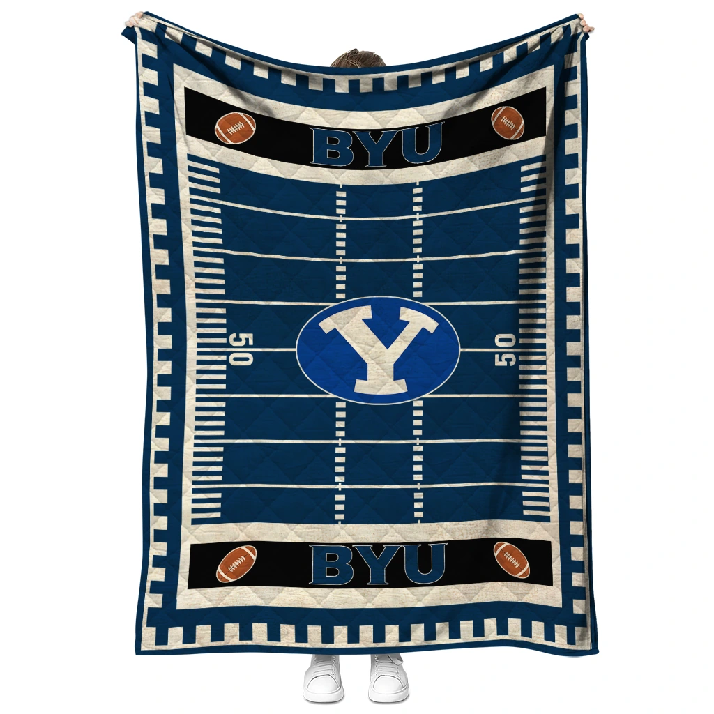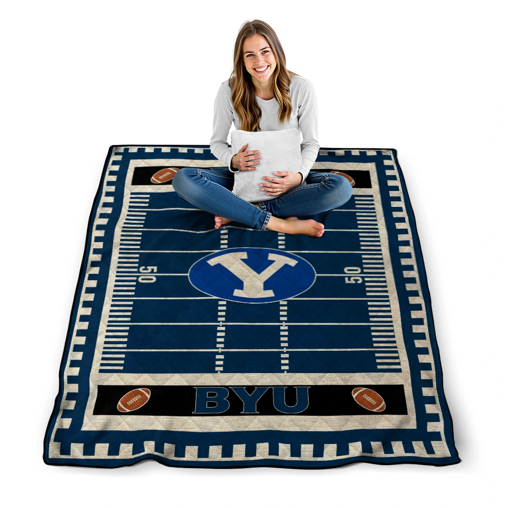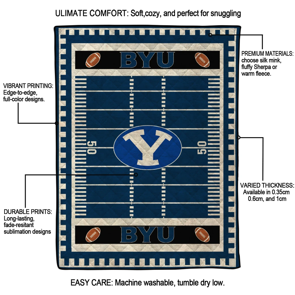 Wrap yourself in warmth and pride with the BYU Cougars Mickey Player Blue Quilt Blanket from the BYU Cougars Blankets collection at Yes That Blanket. Made from 100% premium quilting-weight polyester blended with a touch of microfiber, this quilt offers a smooth, soft finish you’ll love. Choose between two quilting styles—Stipple or Diagonal—and enjoy the comfort of a cotton-filled layer inside that adds extra coziness for every season. The border is available in classic black or white, giving your design a clean, timeless edge.