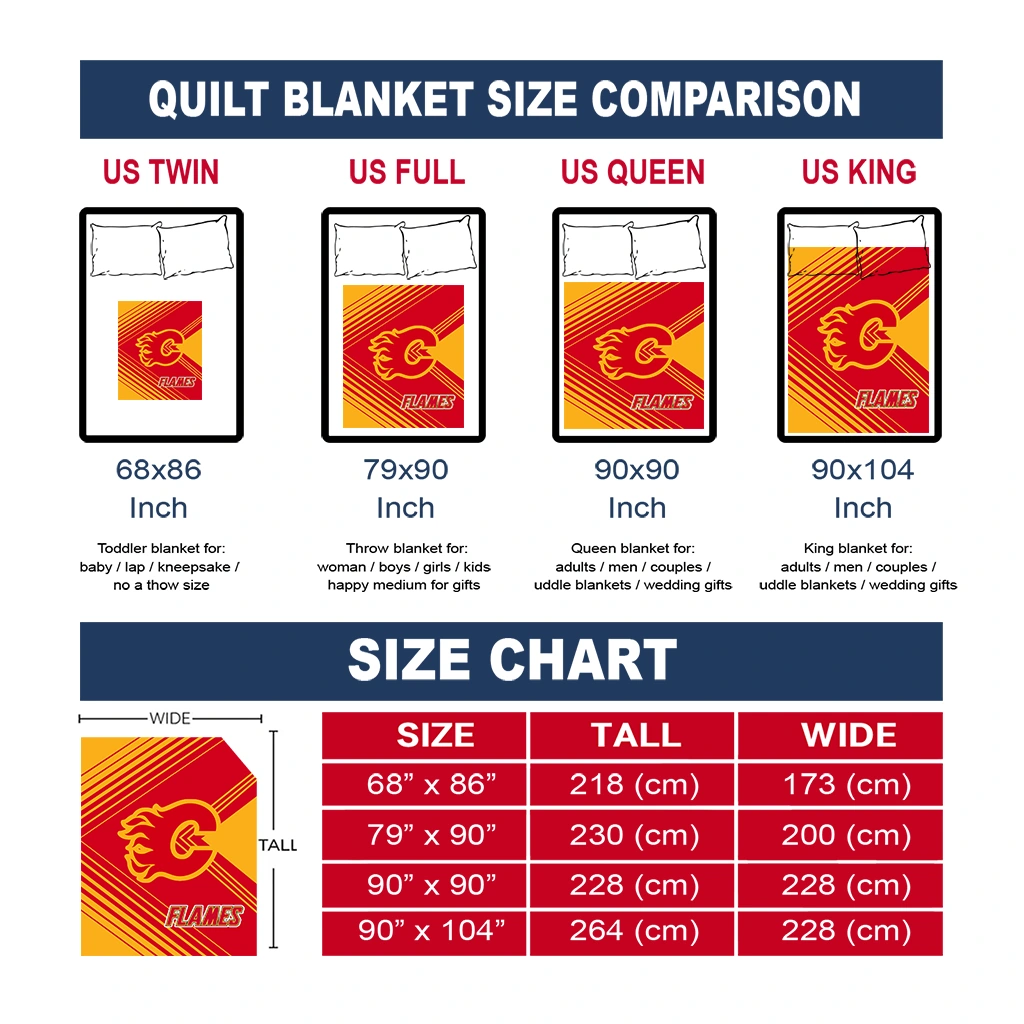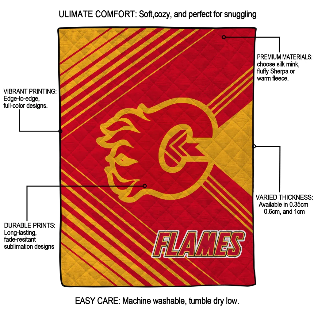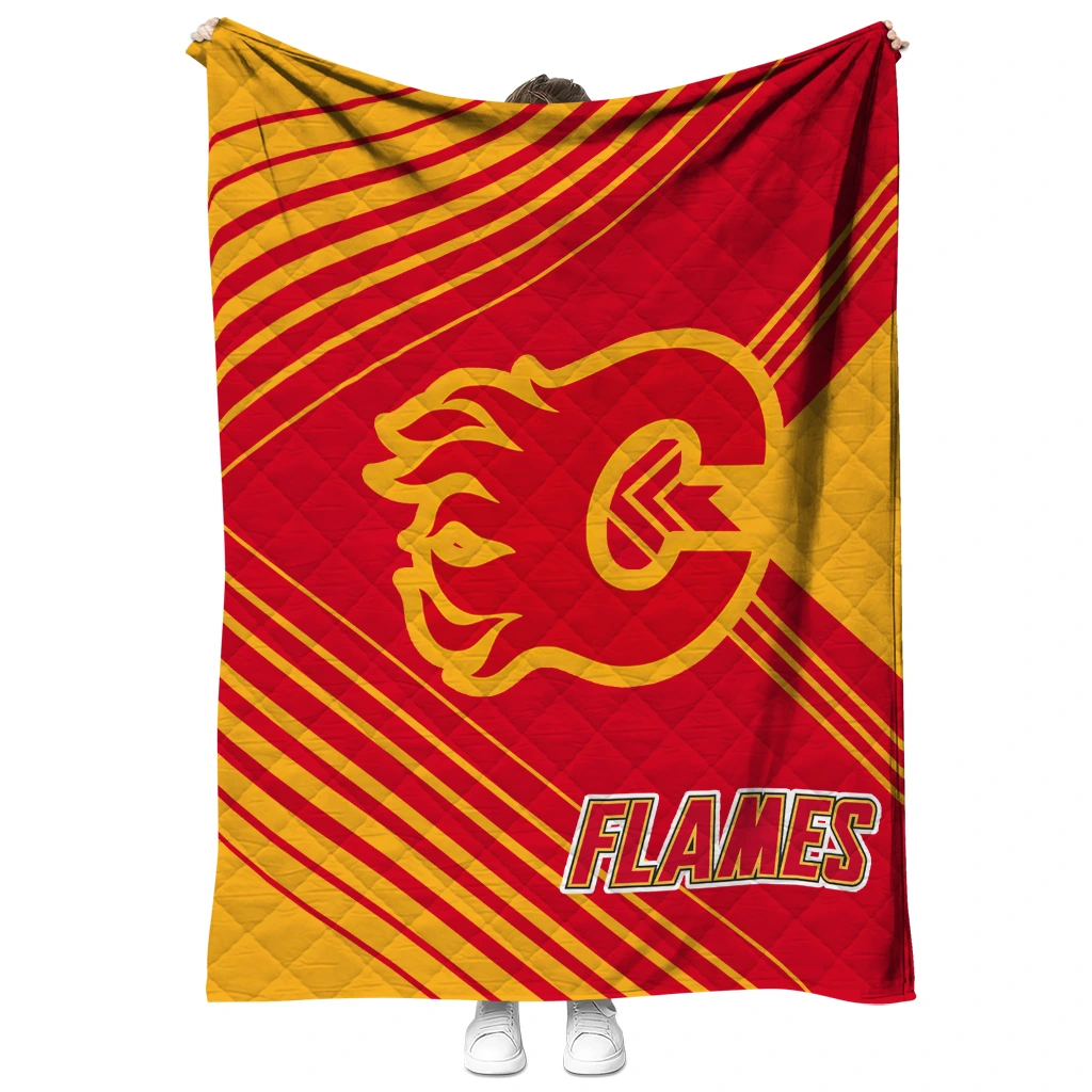Wrap yourself in warmth and pride with the Calgary Flames Arrow Layers Red Quilt Blanket from the Calgary Flames Blankets collection at Yes That Blanket. Made from 100% premium quilting-weight polyester blended with a touch of microfiber, this quilt offers a smooth, soft finish you’ll love. Choose between two quilting styles—Stipple or Diagonal—and enjoy the comfort of a cotton-filled layer inside that adds extra coziness for every season. The border is available in classic black or white, giving your design a clean, timeless edge.