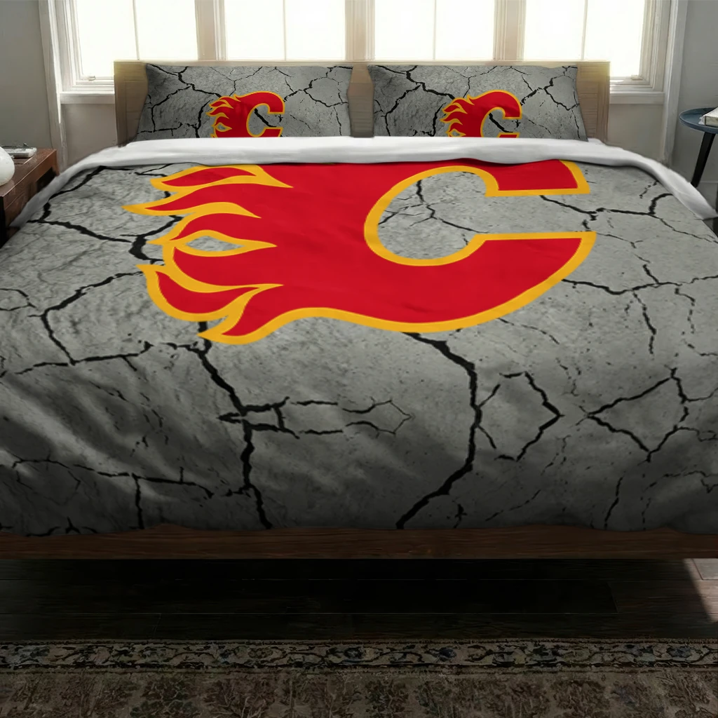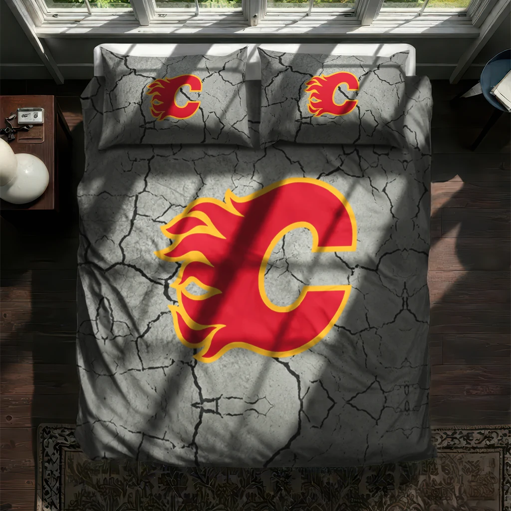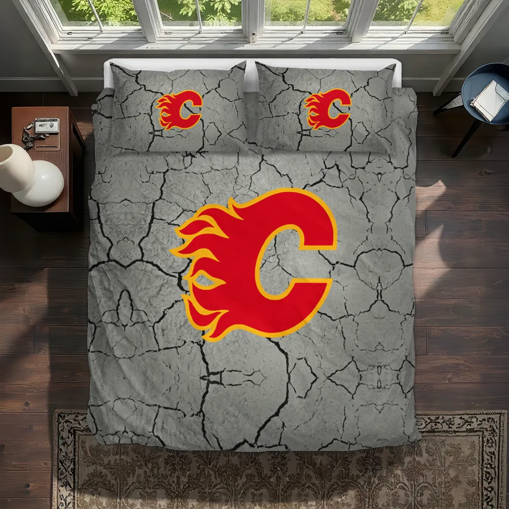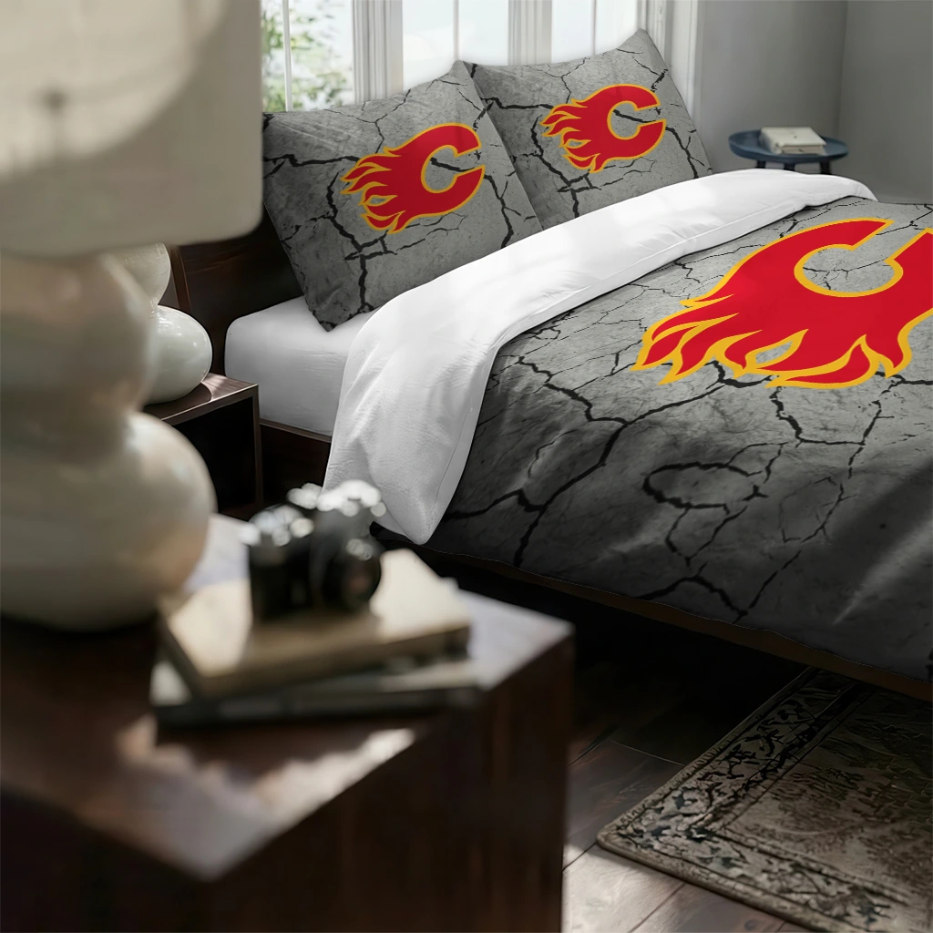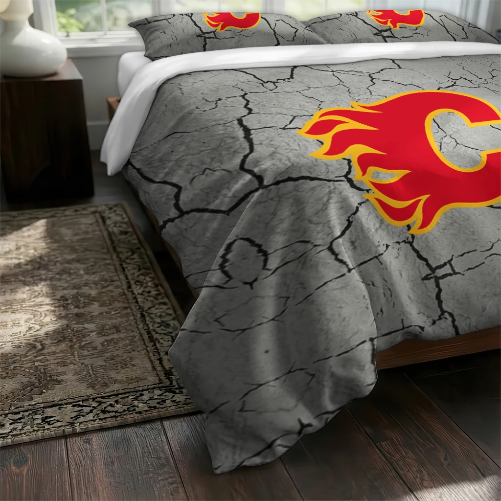Calgary Flames Bedding Set – Cracked Texture Gray Red