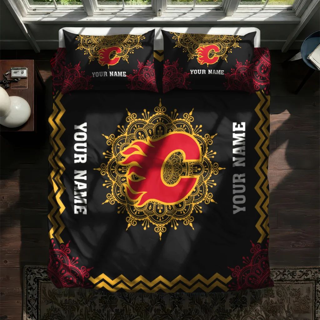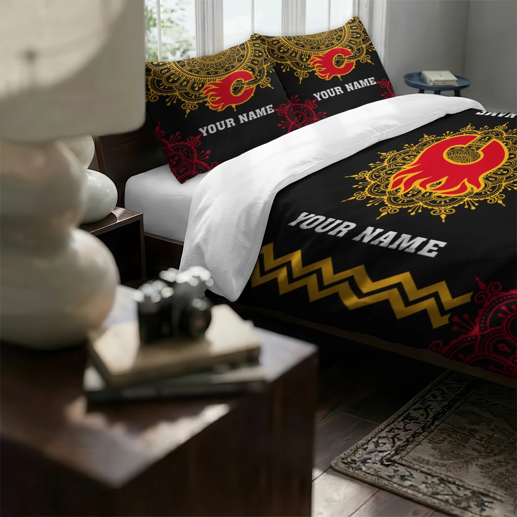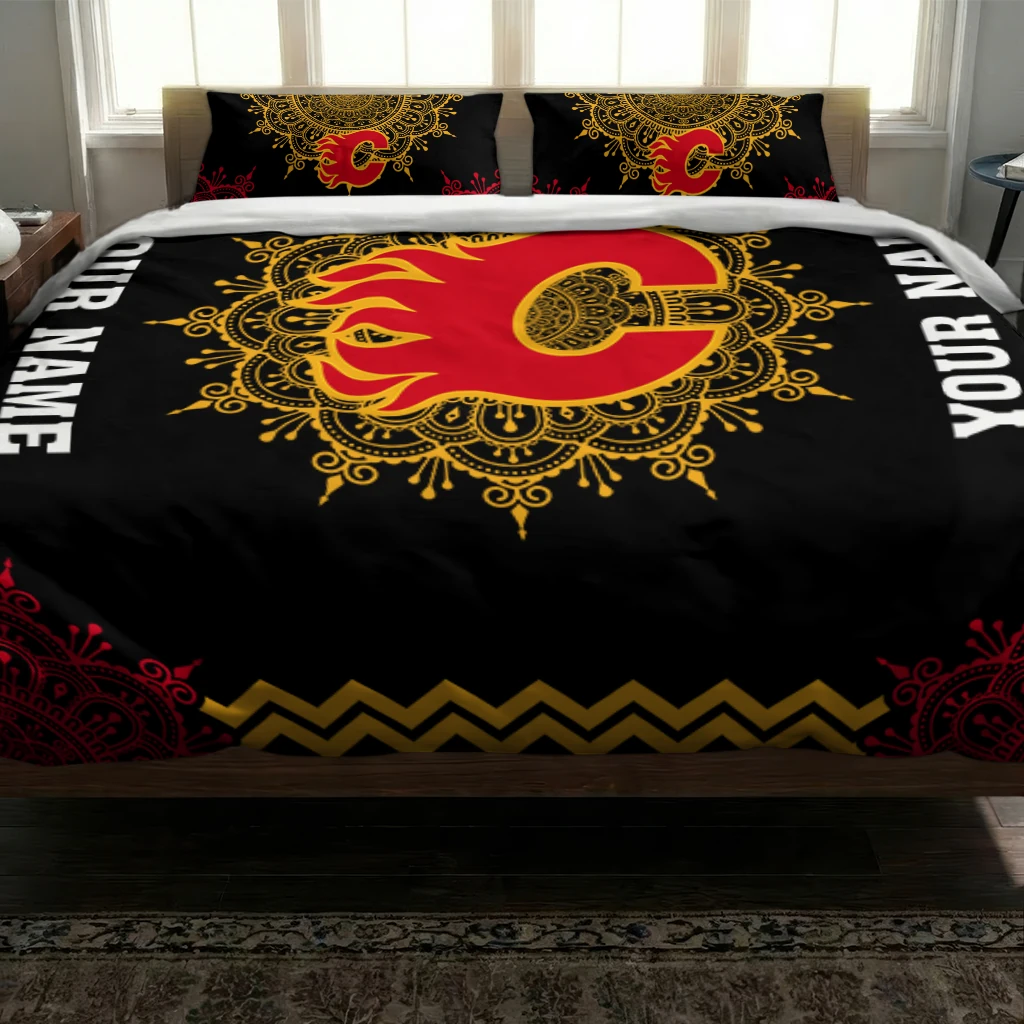 Calgary Flames Bedding Set – Personalized Mandala Lacework Black Red