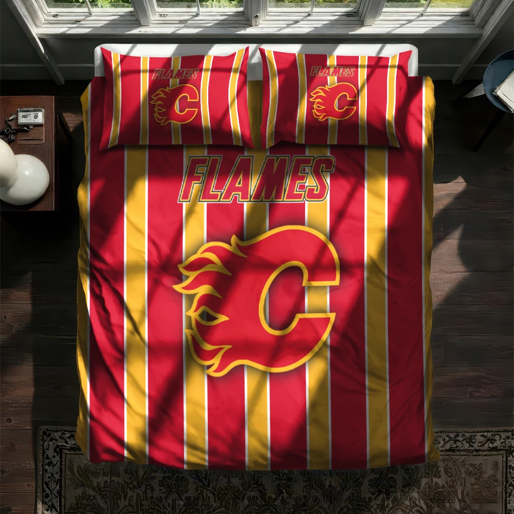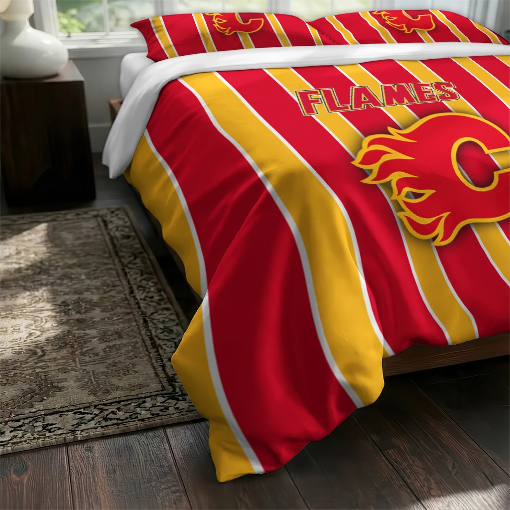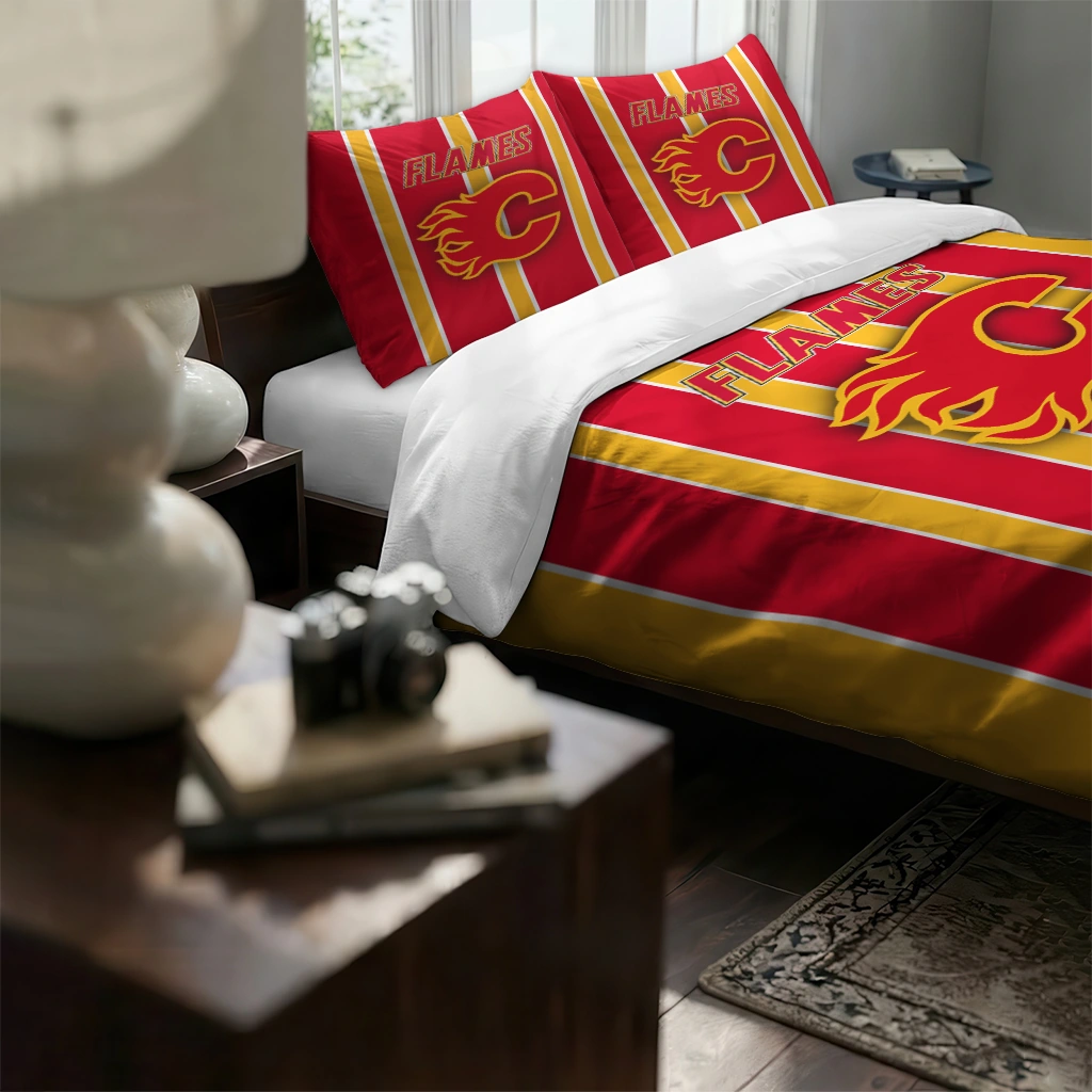 The Calgary Flames Bedding Set – Stripe Style Red Yellow makes your room feel complete, warm, and overflowing with team pride. Designed for true fans, this bedding set from the Calgary Flames Bedding Sets collection at Yes That Blanket turns your sanctuary into a cozy retreat where sport style meets ultimate relaxation. Experience the perfect blend of comfort and passion every night with a finish so soft, you’ll never want to leave.