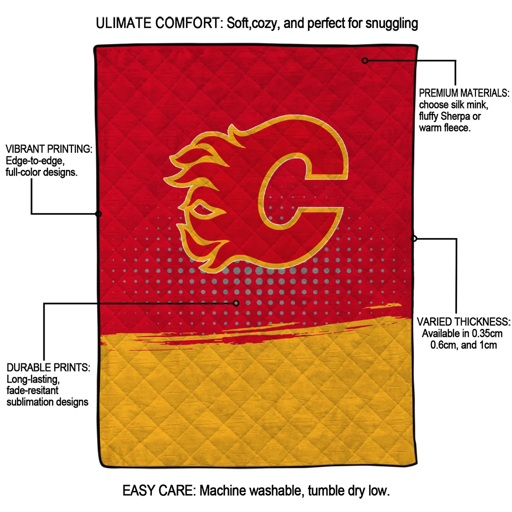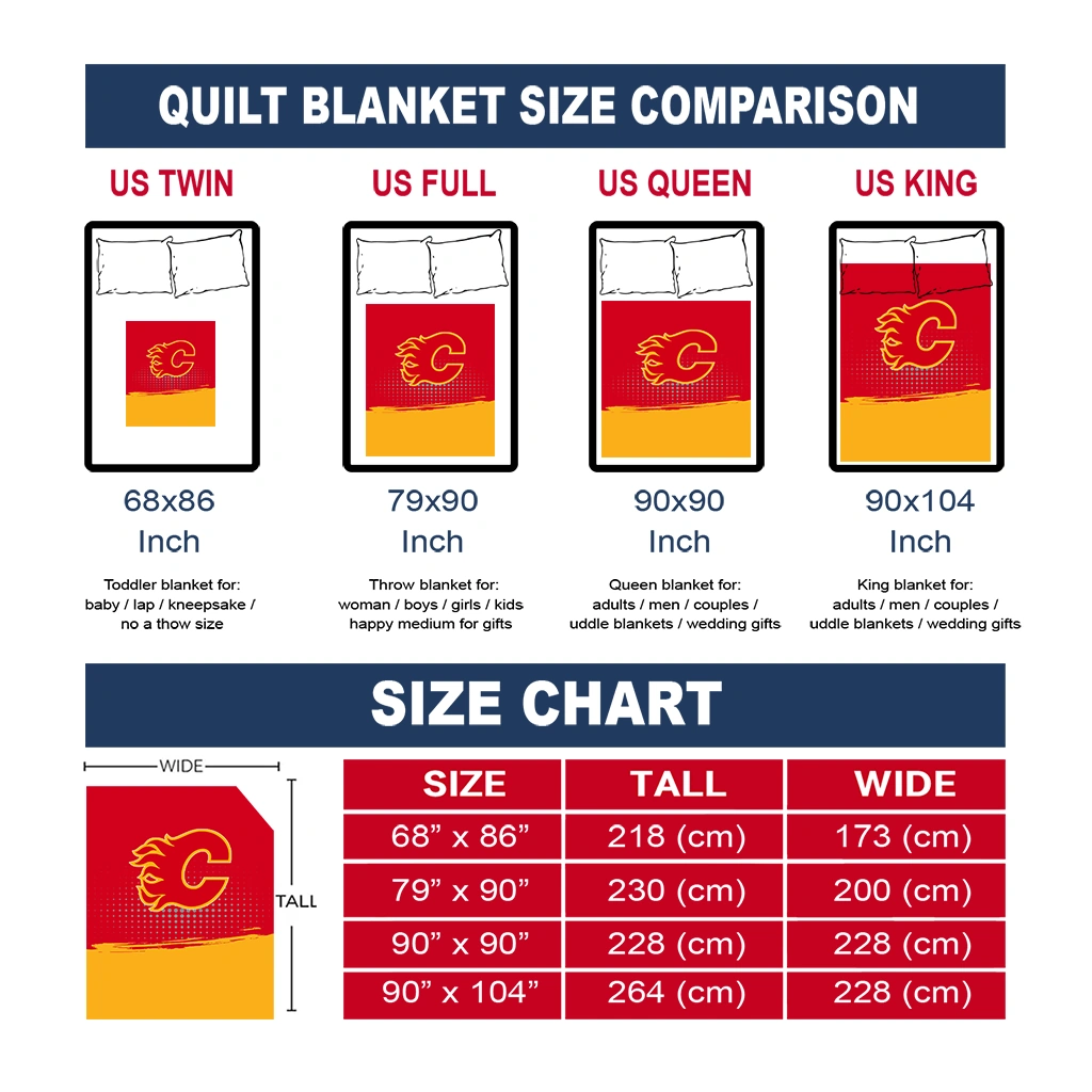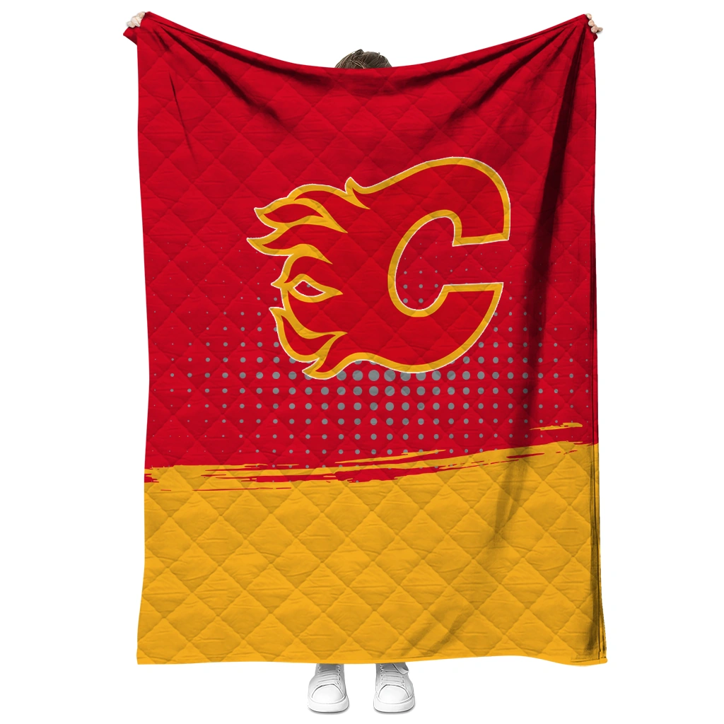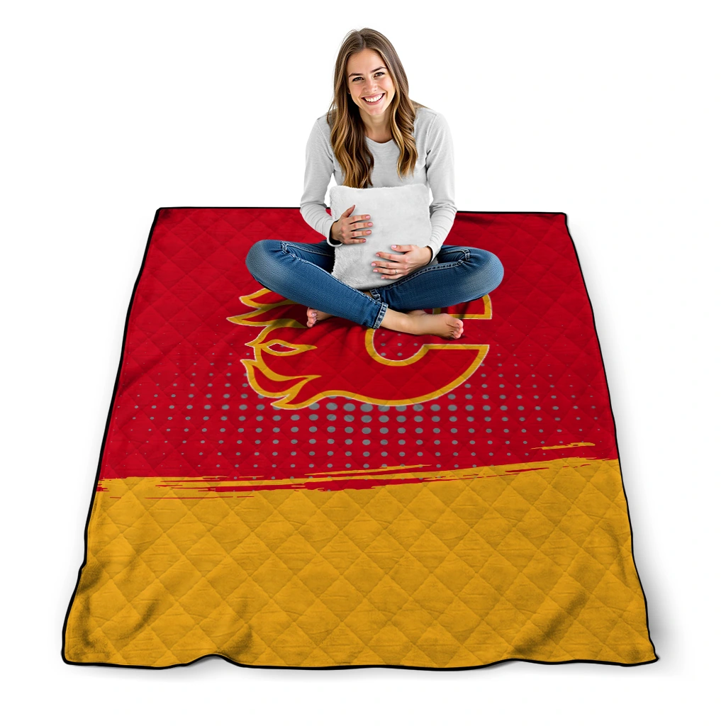 Wrap yourself in warmth and pride with the Calgary Flames Dot Illusion Red Quilt Blanket from the Calgary Flames Blankets collection at Yes That Blanket. Made from 100% premium quilting-weight polyester blended with a touch of microfiber, this quilt offers a smooth, soft finish you’ll love. Choose between two quilting styles—Stipple or Diagonal—and enjoy the comfort of a cotton-filled layer inside that adds extra coziness for every season. The border is available in classic black or white, giving your design a clean, timeless edge.
