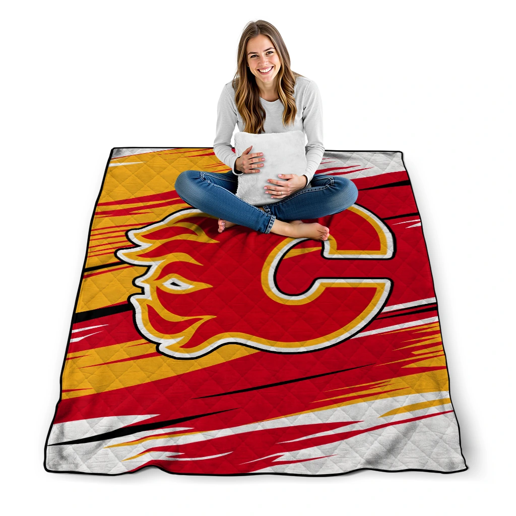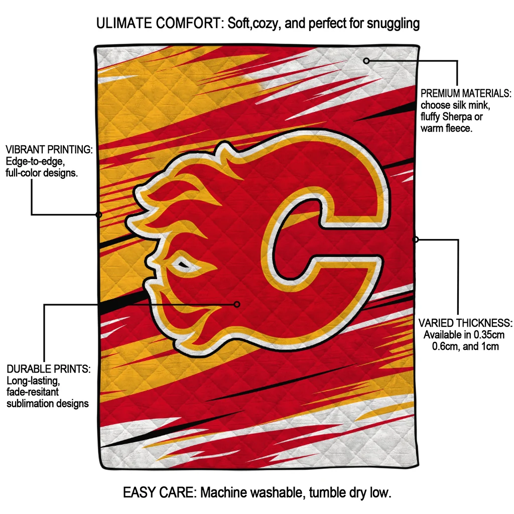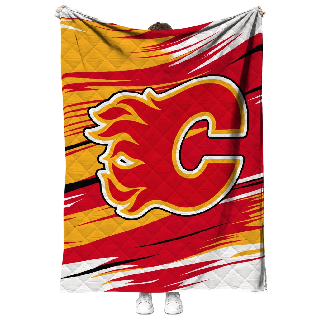Calgary Flames Wild Lines Red White Quilt Blanket
